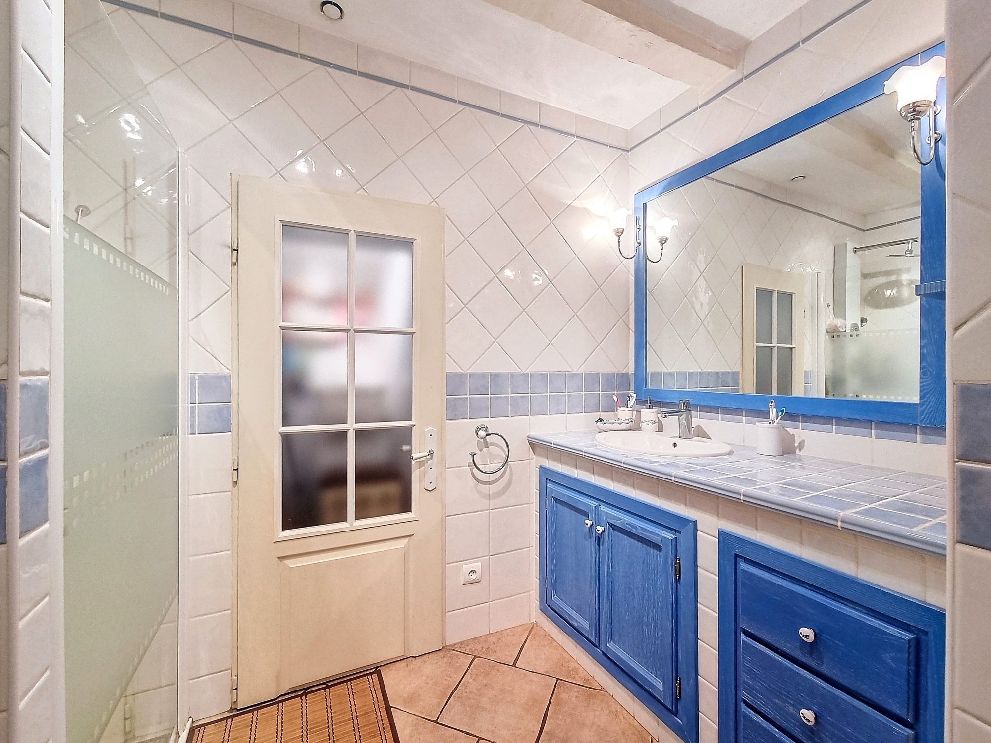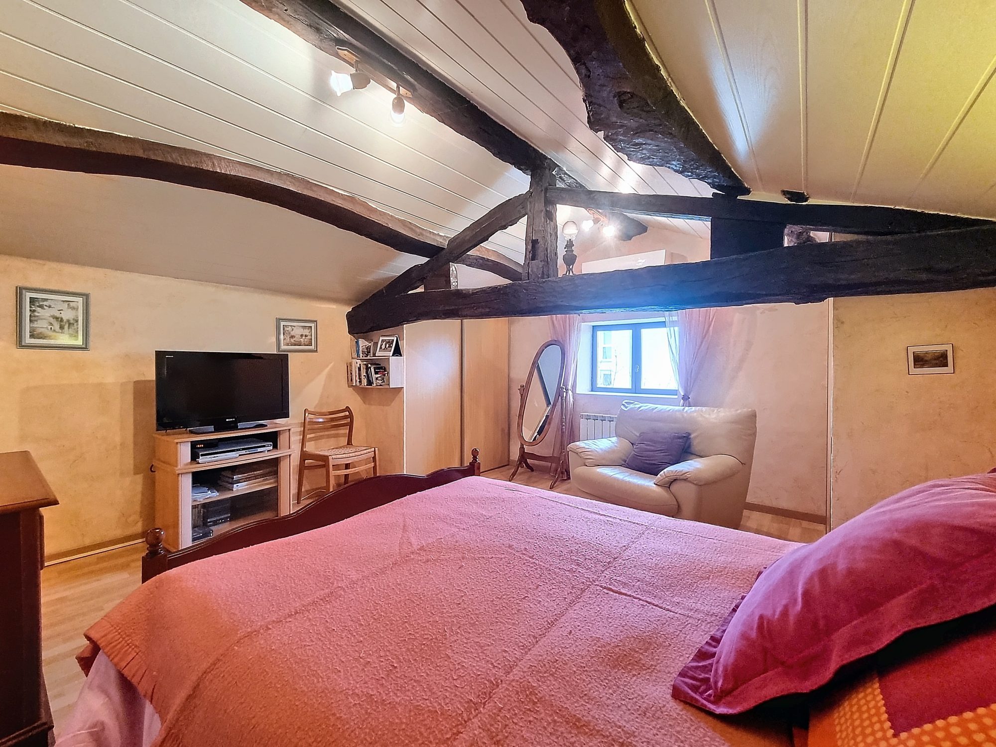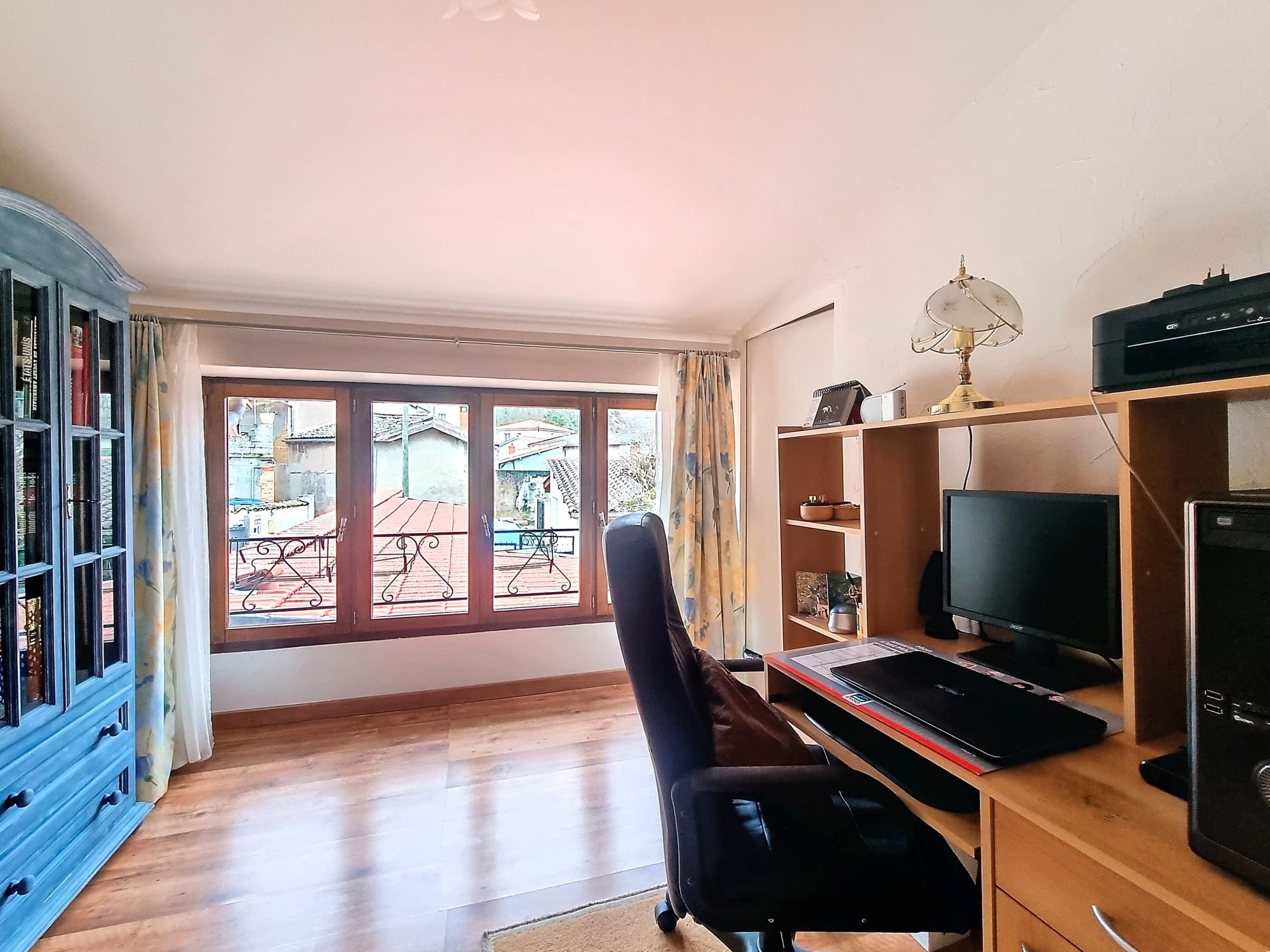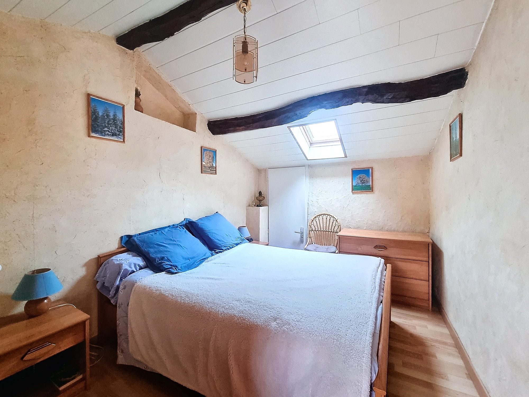 À l’étage, vous trouverez un espace bureau avec rangements sous pente, ainsi que deux chambres, dont une climatisée avec double dressing.