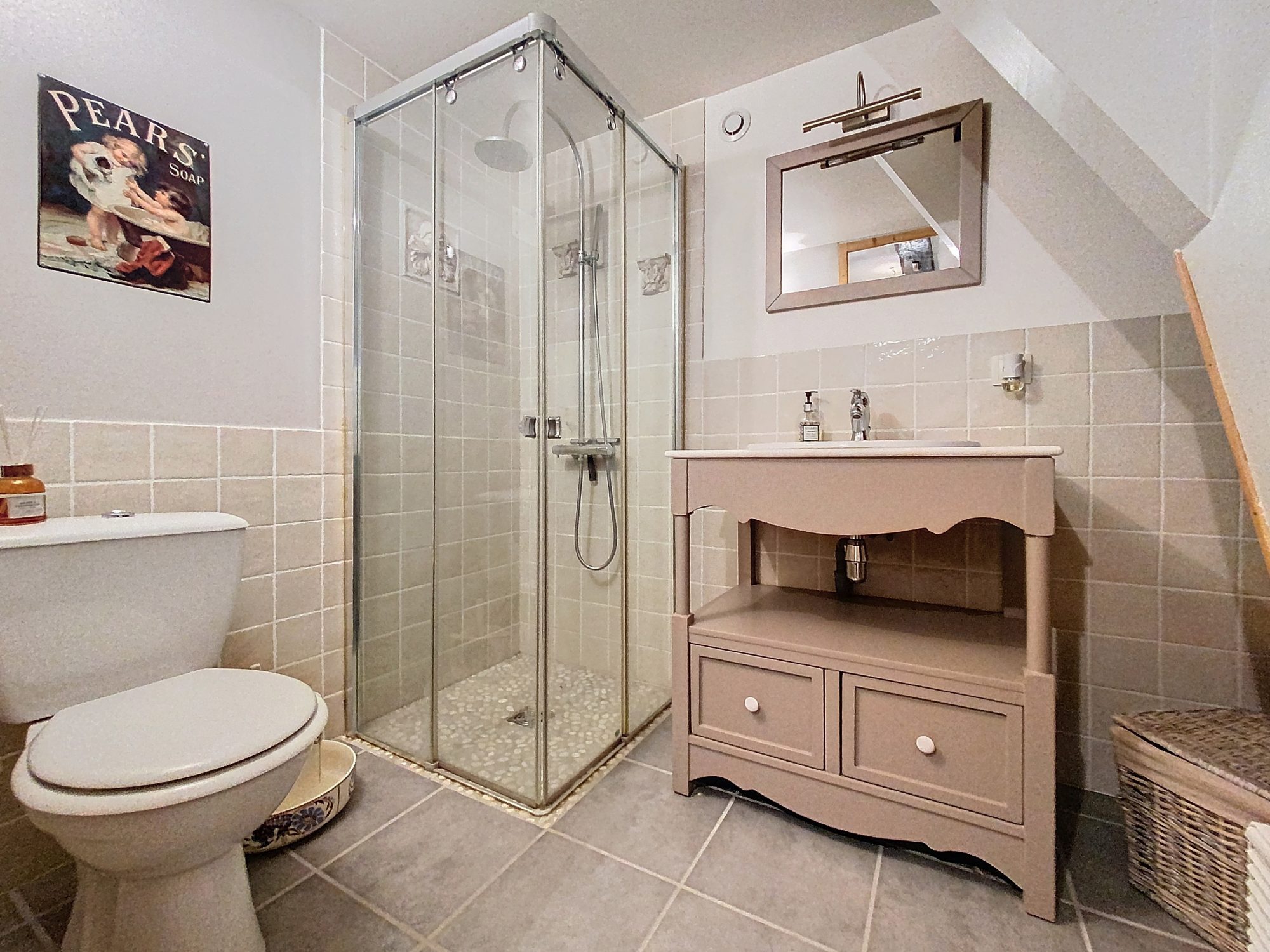 Au rez-de-chaussée vous profiterez d'un coin cuisine avec salle à manger, d'un cellier et d'une salle d'eau avec toilettes.