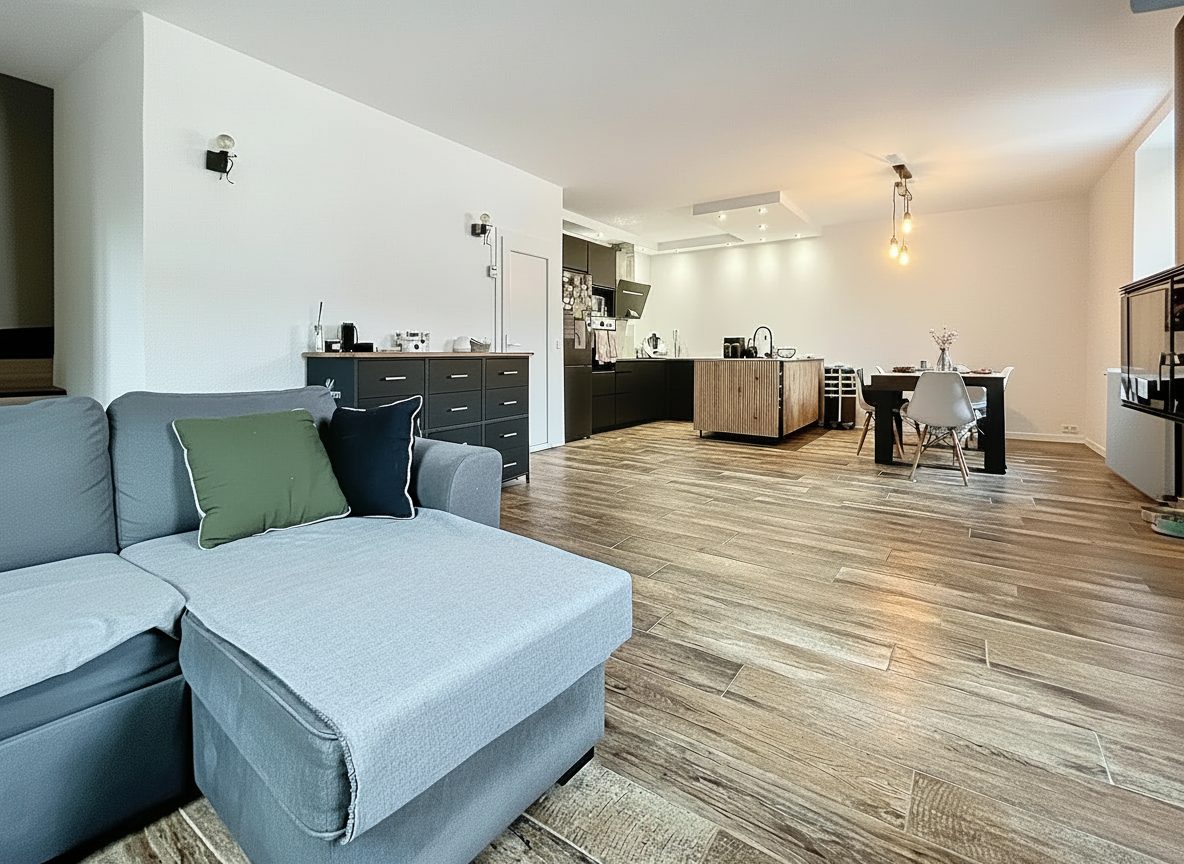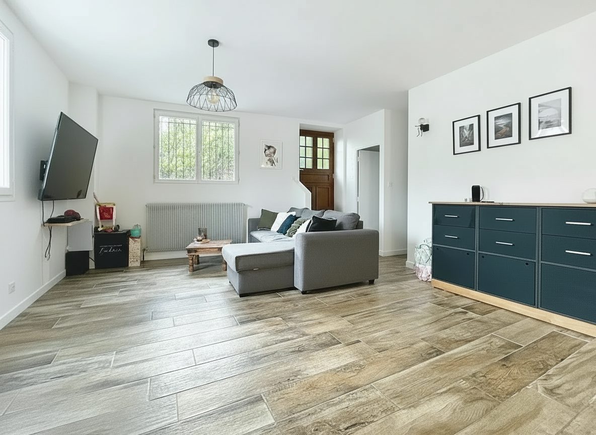 Au 1 er étage, un vaste séjour de 60 m² baigné de lumière vous accueille, parfait pour des moments conviviaux en famille ou entre amis. La cuisine, aménagée et équipée il y a un an, est très fonctionnelle. Un WC indépendant complète ce niveau.