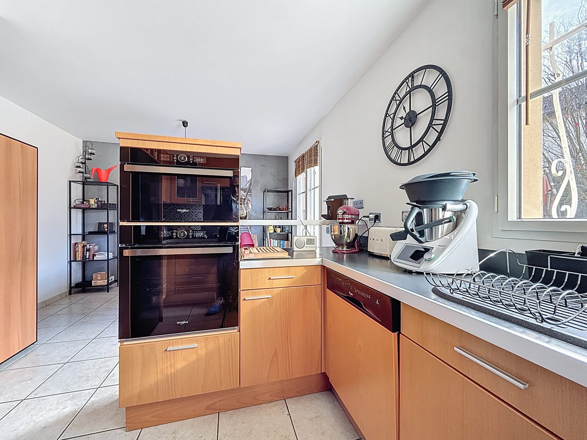 -Une cuisine ouverte aménagée et équipée, avec coin repas, et accès direct à la terrasse. Accès immédiat au garage et à la buanderie. Un wc indépendant, placard d'entrée intégré.