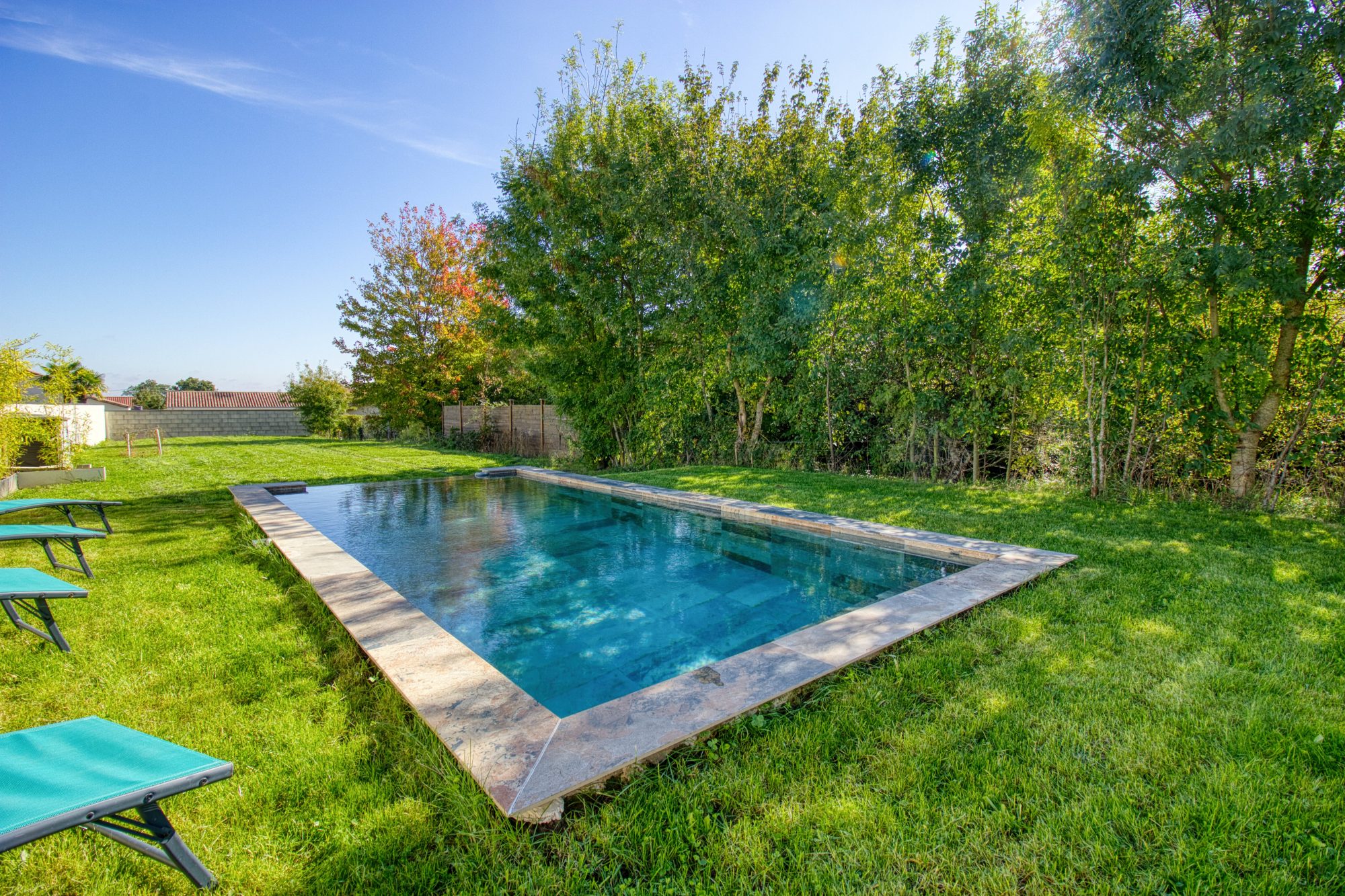 A l'extérieur une terrasse de 30 m², parfaite pour les dîners en plein air, et un jardin soigné pour des moments de détente. Une piscine à débordement carrelée complète ce havre de paix, idéal pour les journées estivales. un garage de 20 m² complète l'ensemble.