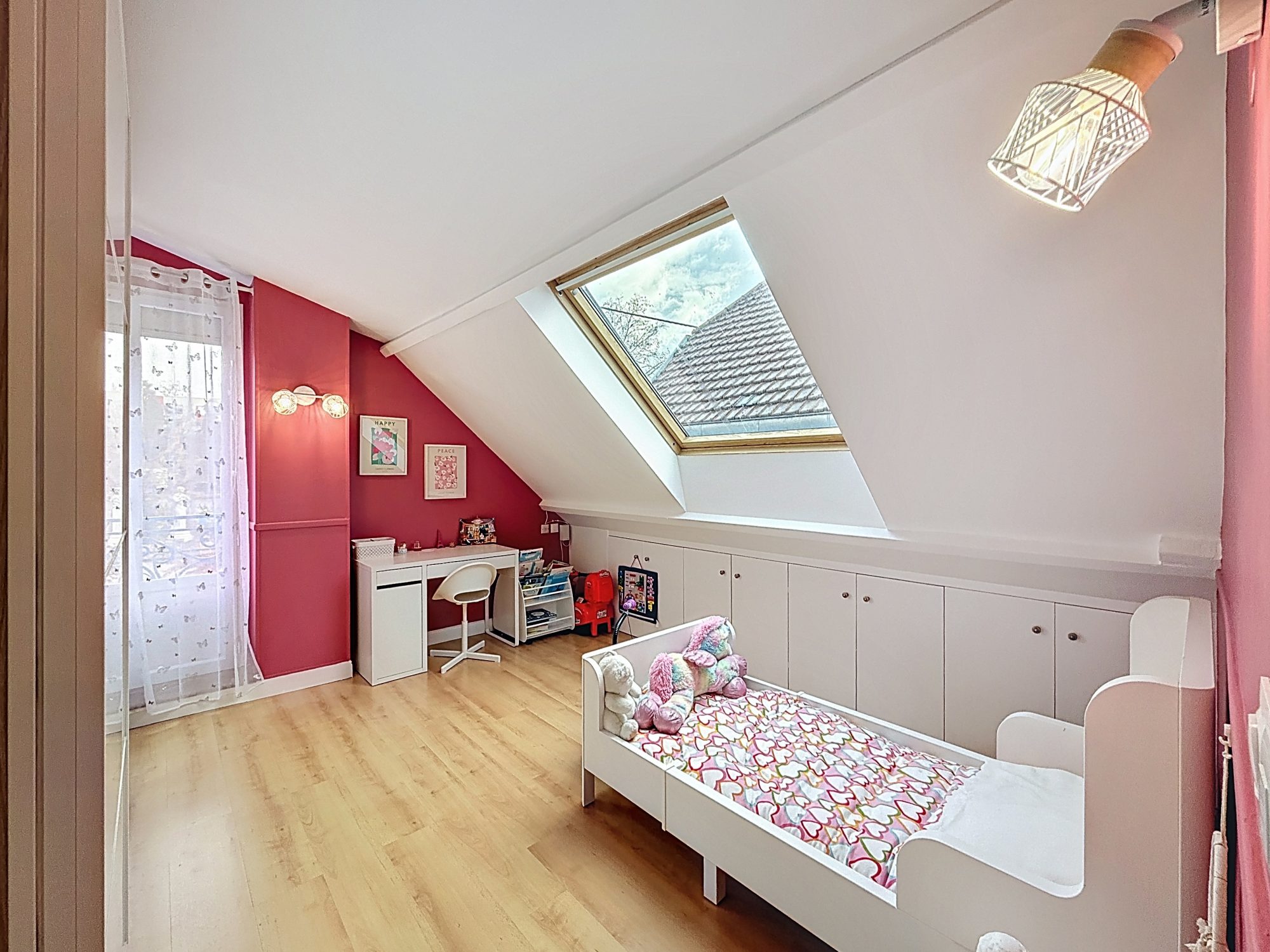 À l’étage, se trouvent une chambre confortable, une seconde pièce pensée pour un bébé ou jeune enfant, ainsi que d’un bureau parfait pour le télétravail. Une belle salle de bain moderne et un toilette indépendant complète ce niveau.