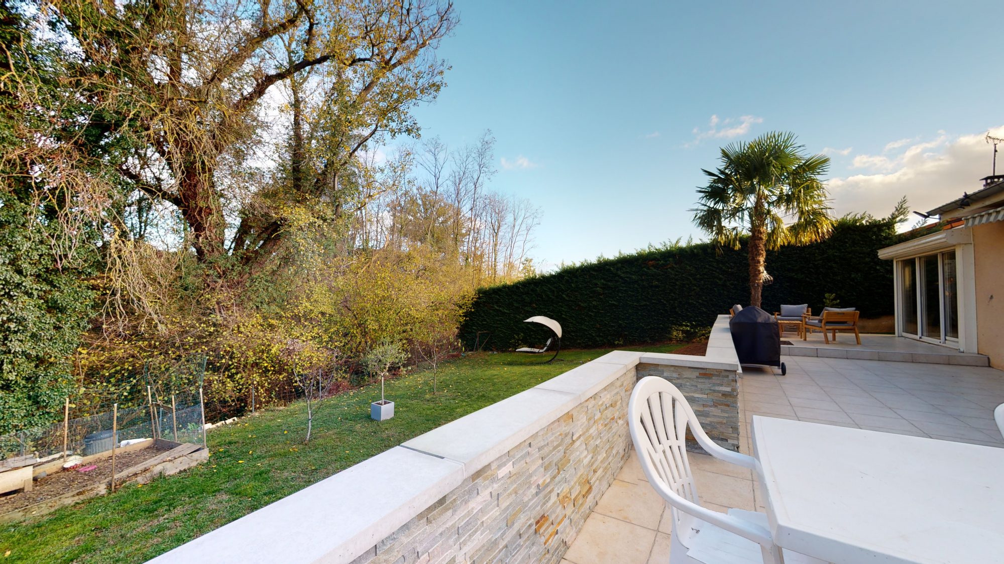 Beau jardin paysagé piscinable de 850m², clos de mur, sans vis à vis.