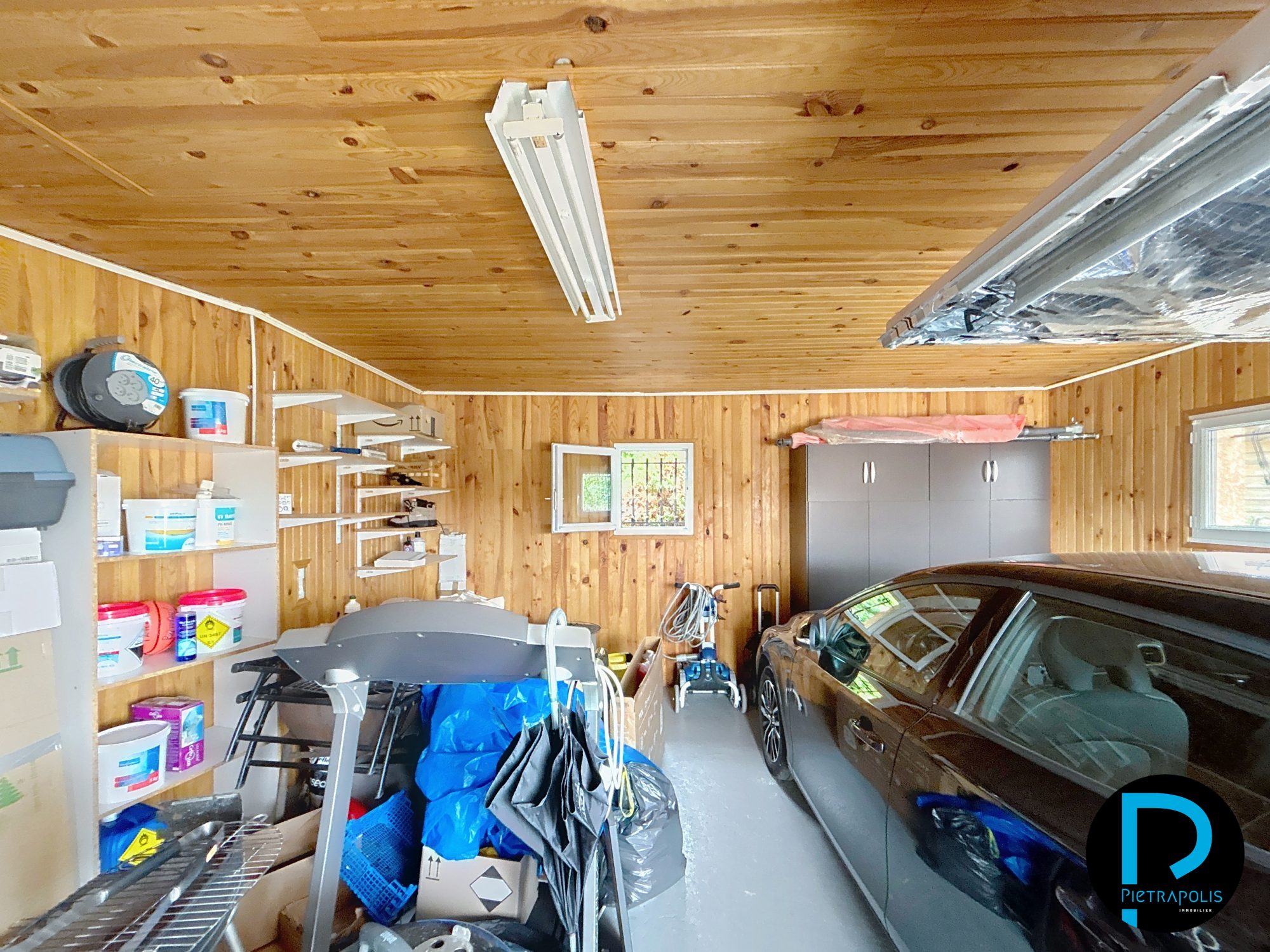 Le tout est implanté sur un terrain clos agrémenté de portails, d’une piscine enterrée sécurisée par un dôme et d’un abri de jardin.