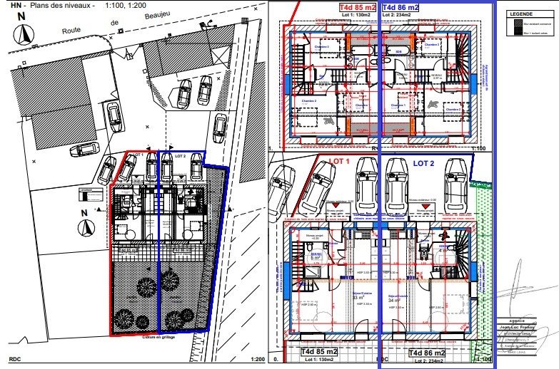 Duplex (Lot 1) à rénover en totalité selon vos envies et vos goûts, viabilisé, orienté Sud / Nord- (côté vignes et colline de Brouilly), d'une superficie actuelle d'environ 100 m².