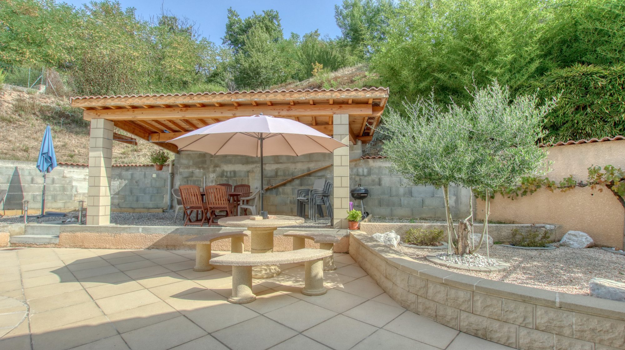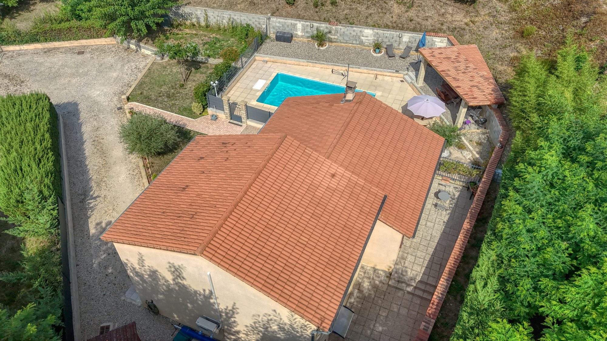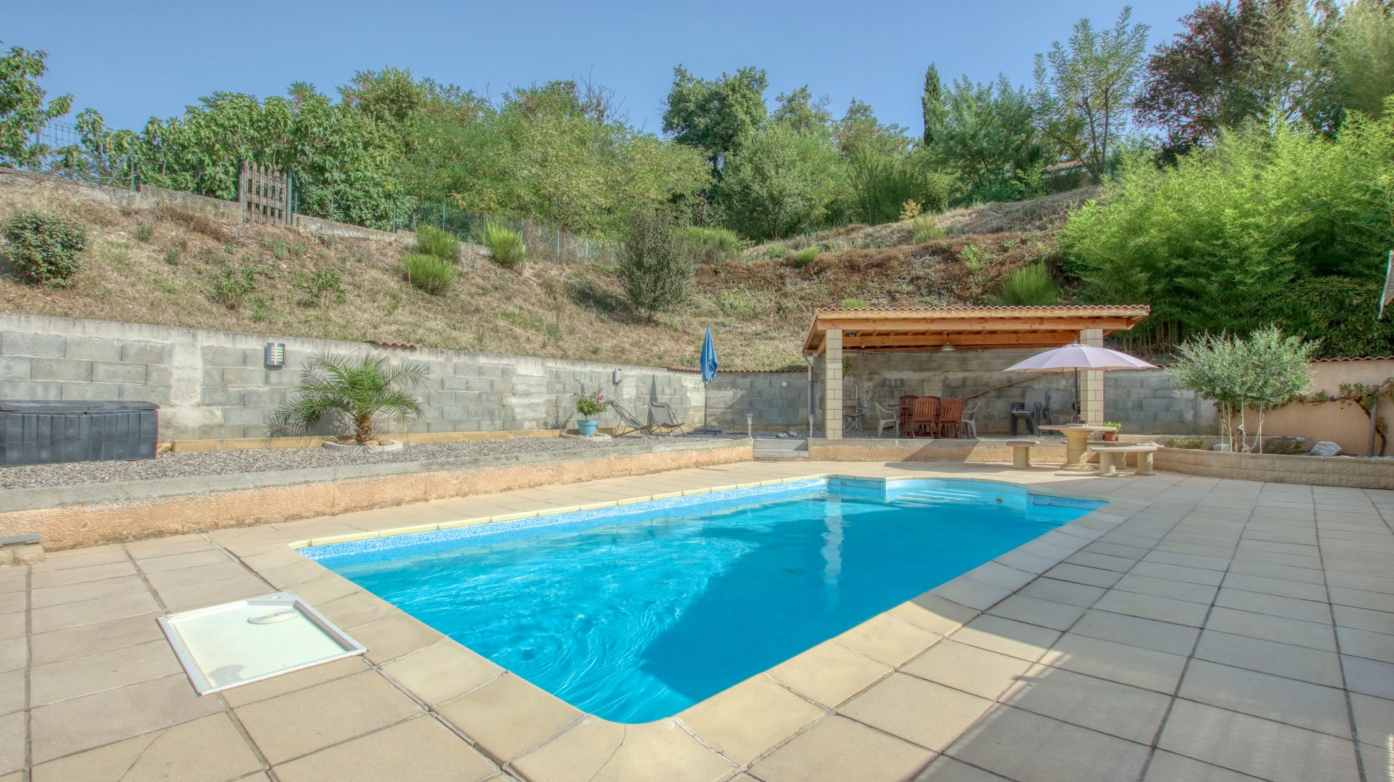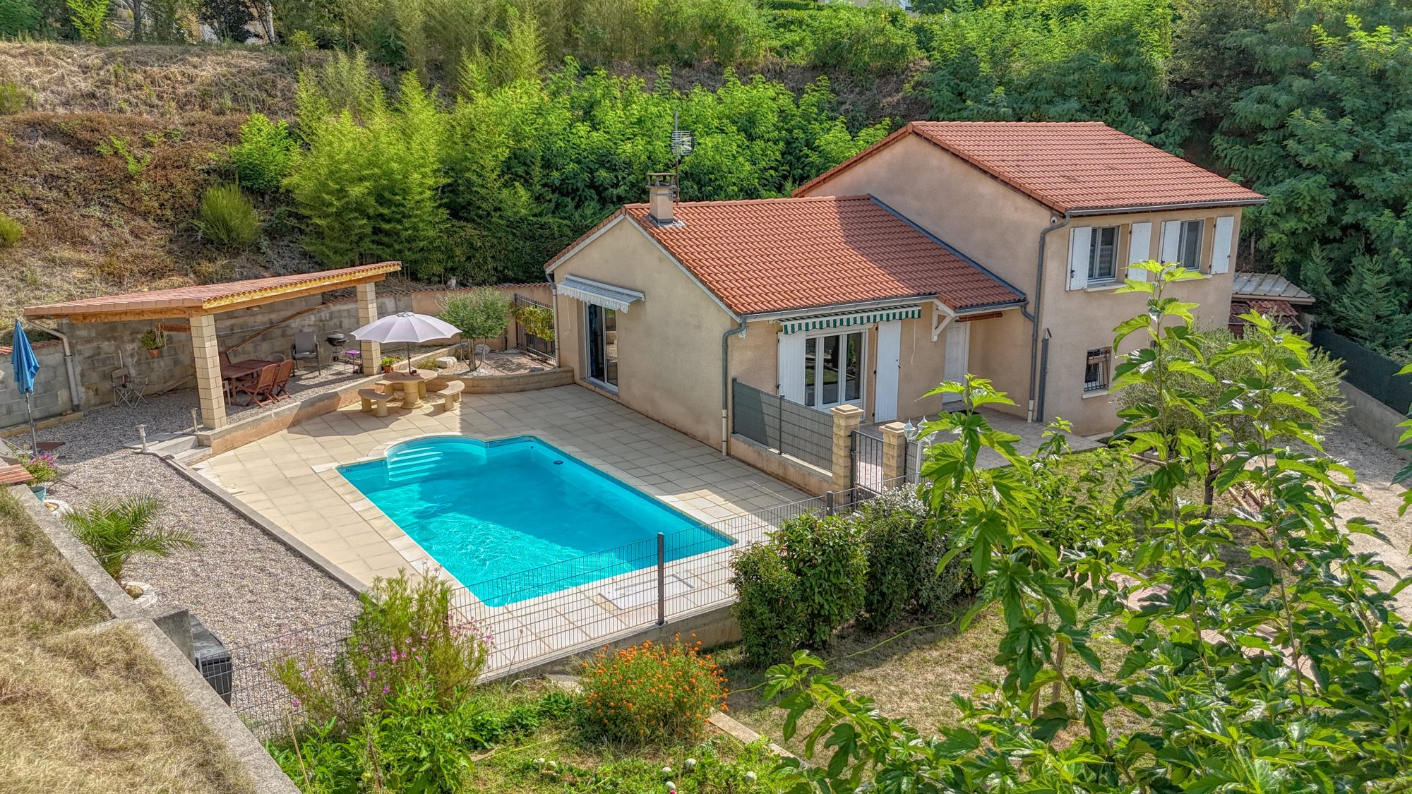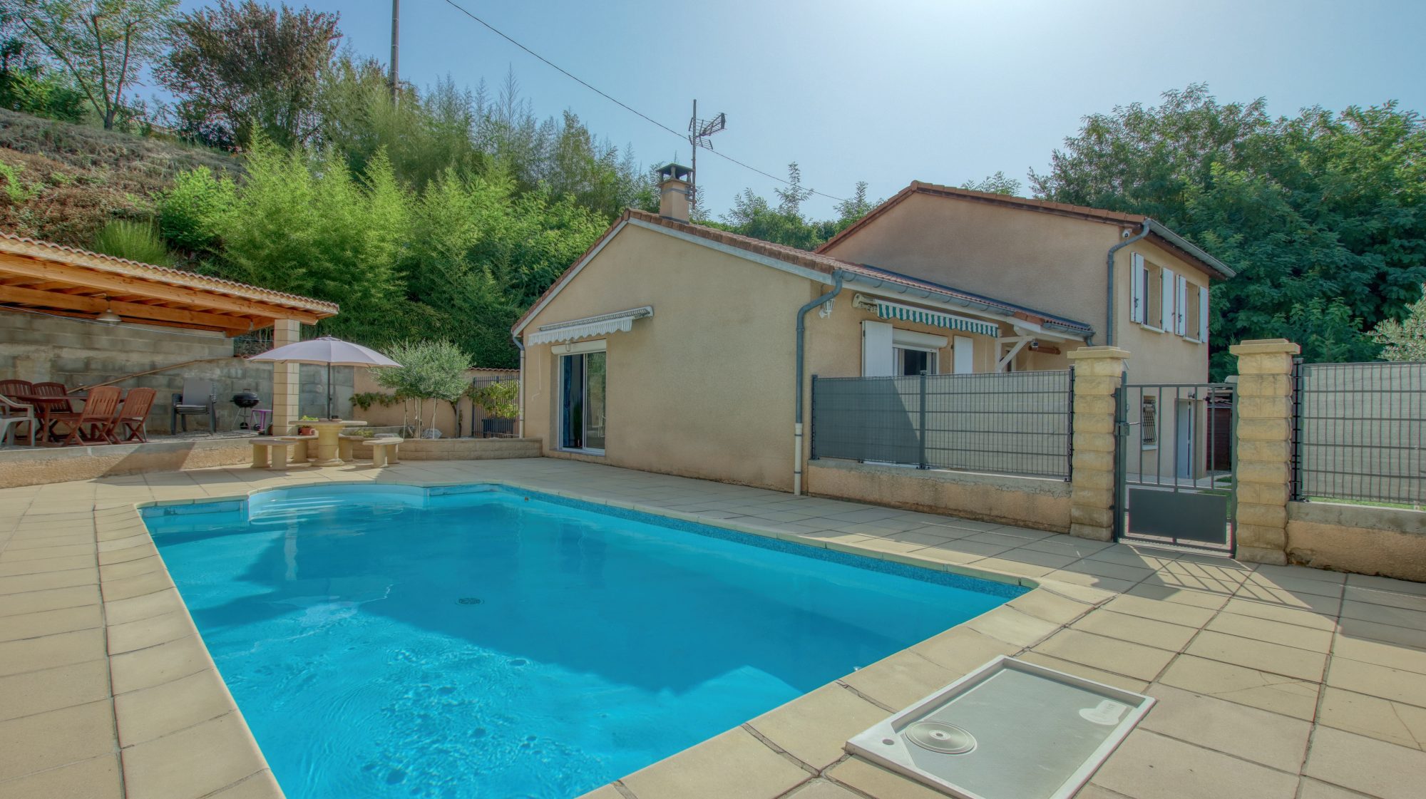 Vous pourrez profiter d'une piscine sécurisée de 8mX4m , de deux grandes terrasses et un coin cuisine d'été.