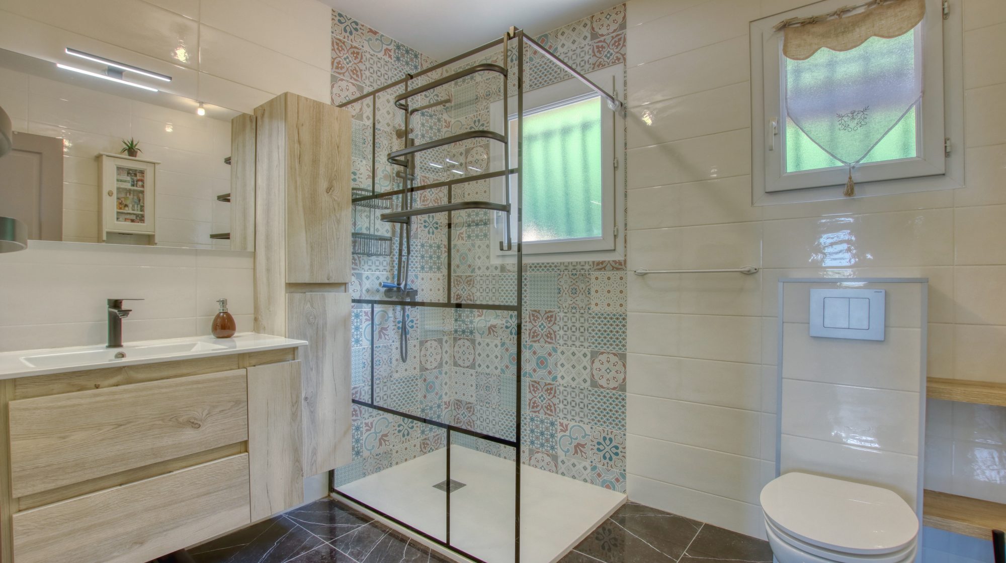 La salle d'eau a été rénovée récemment offrant un espace moderne et fonctionnel et propose 3 chambres.