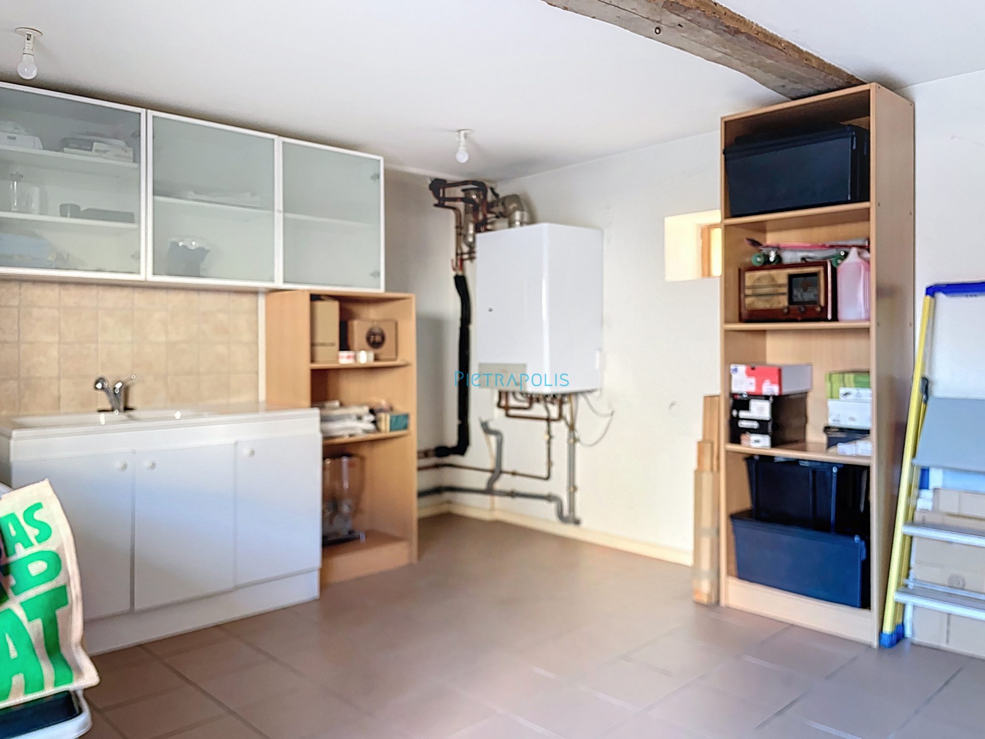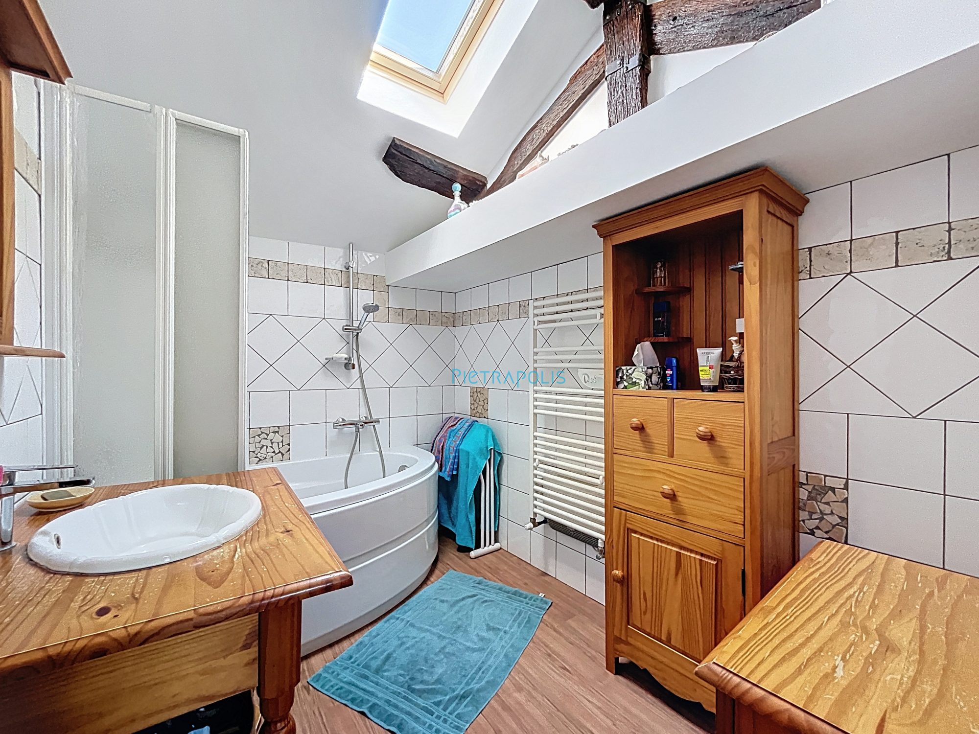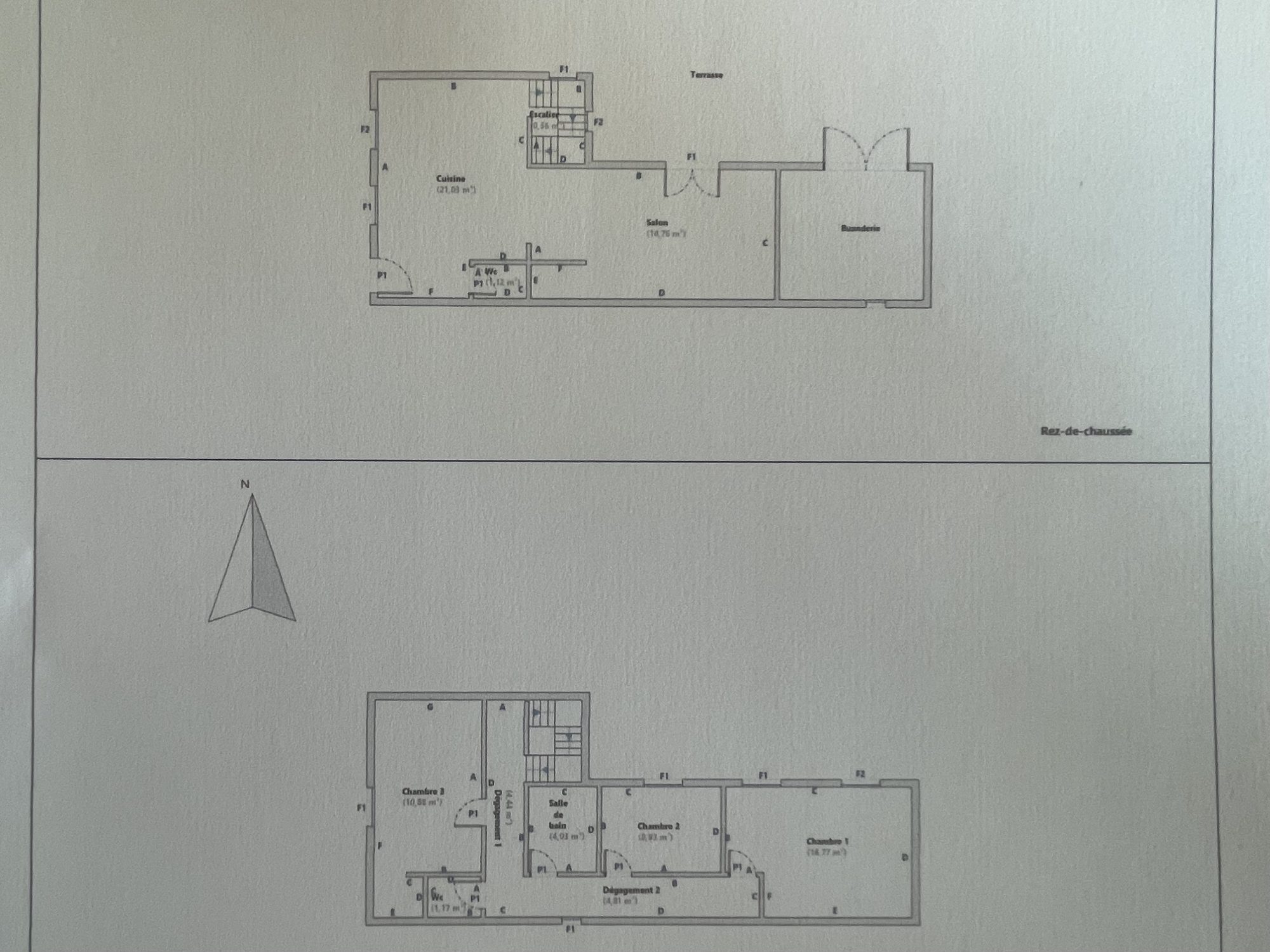 Avec ses 93 m² et ses poutres apparentes, elle offre un charme authentique et se compose au rez-de-chaussée d'une pièce de vie avec entrée et cuisine ouverte sur le salon, d'un toilette. Le premier niveau quant à lui se compose de trois chambres, d'une salle de bain et d'un toilette indépendant. Une terrasse carrelée et une chaufferie/buanderie viennent compléter ce bien.