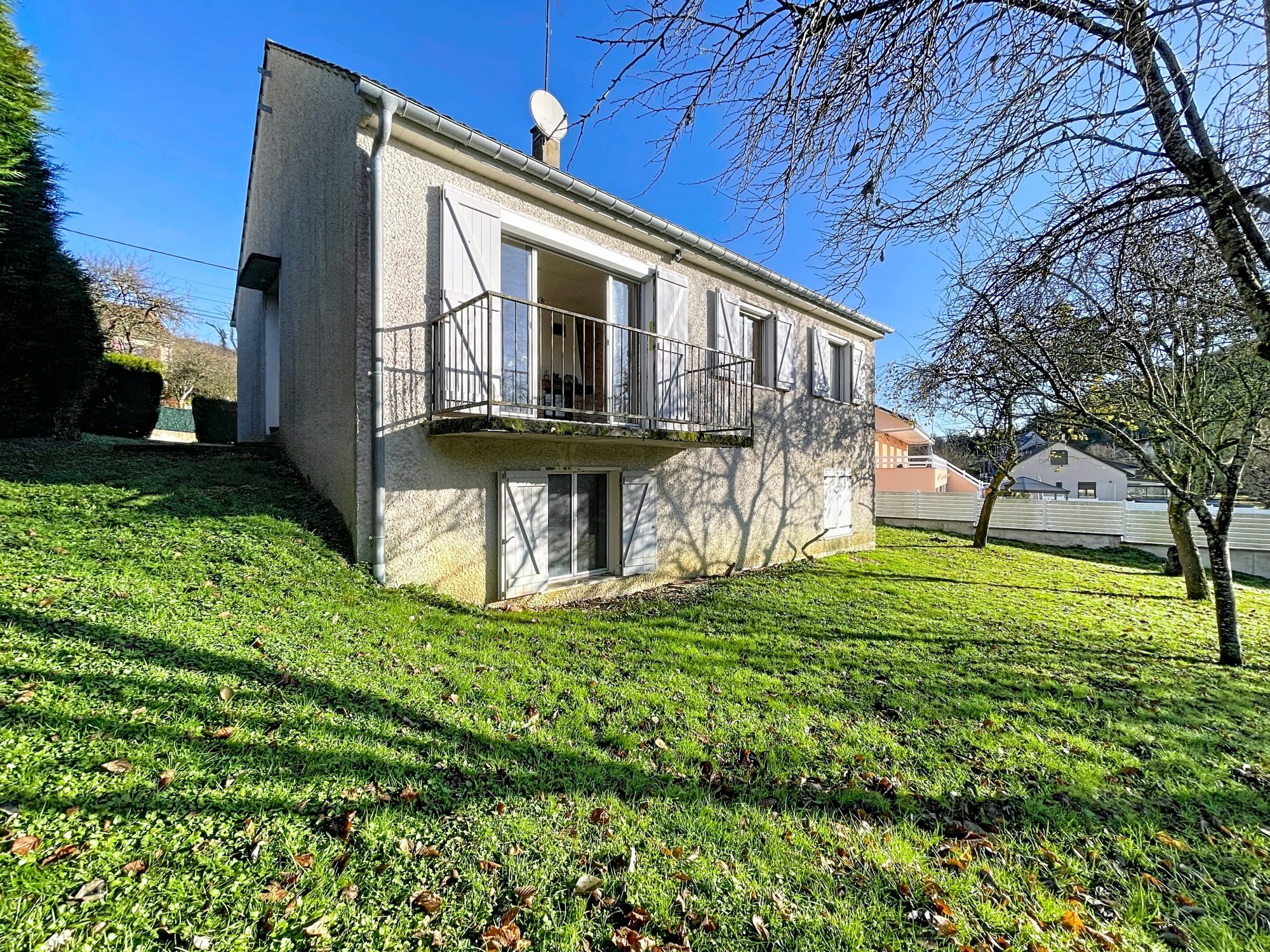 Au rez-de-chaussée, une entrée avec placard, un dégagement, un salon/séjour lumineux avec cheminée, balcon, une cuisine, un wc, une salle de bains et trois chambres.