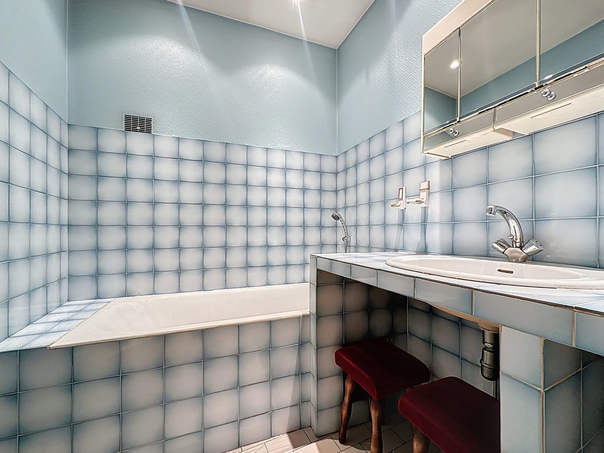 Le second logement, accessible par une entrée distincte, dispose d’un séjour climatisé avec coin cuisine, d’une chambre avec placard, d’une salle de bains et de WC séparés.