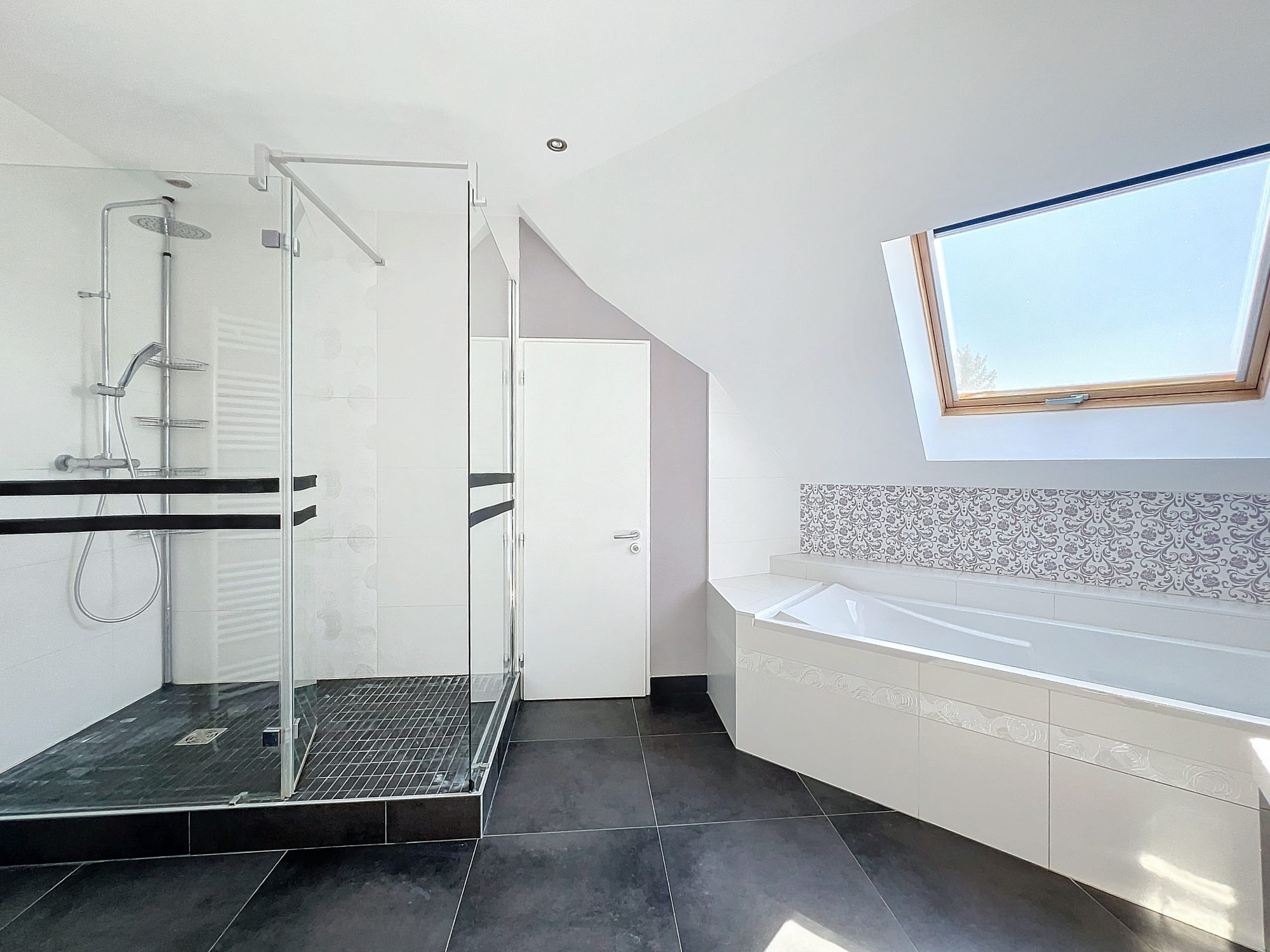 Au premier étage, vous trouverez une belle mezzanine desservant les trois grandes chambres avec dressing une salle de bain avec douche et baignoire et un wc indépendant.