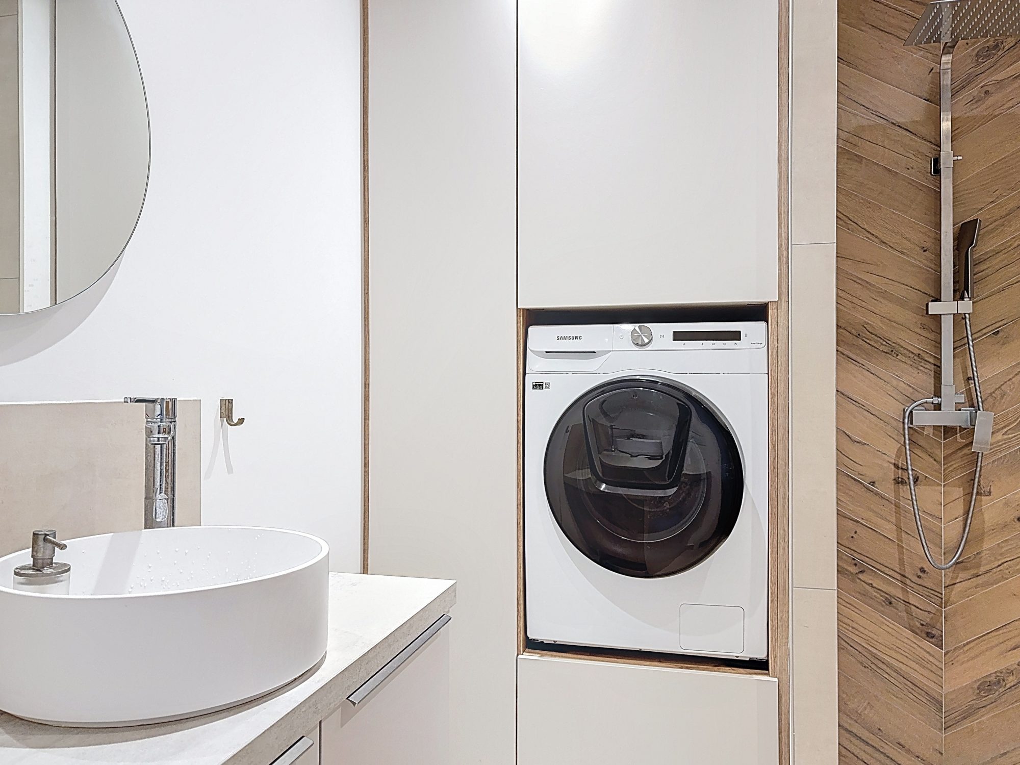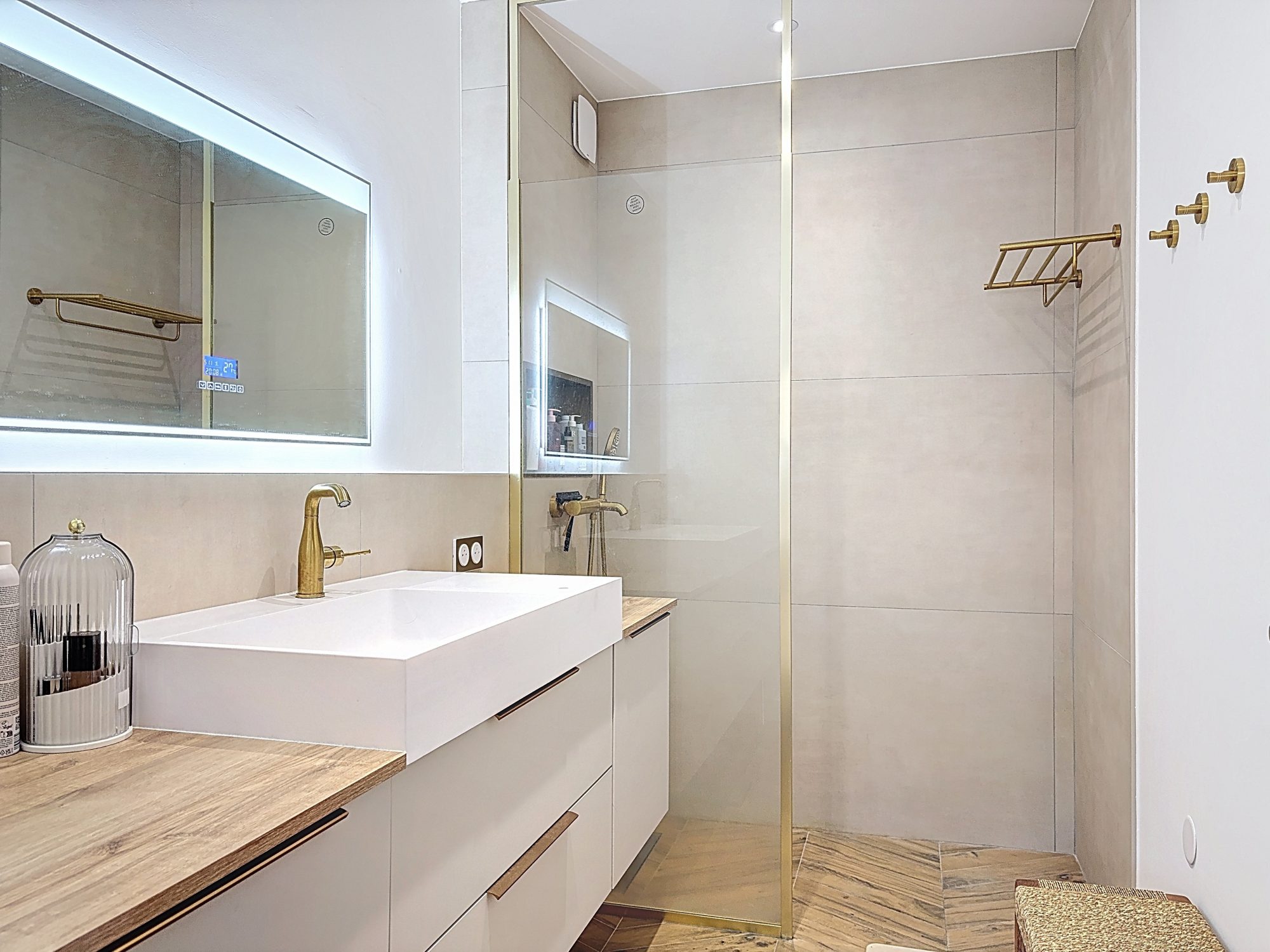 On aime aussi la répartition des volumes, la cuisine équipée meublée et son îlot central, les 2 salles d'eau superbes.