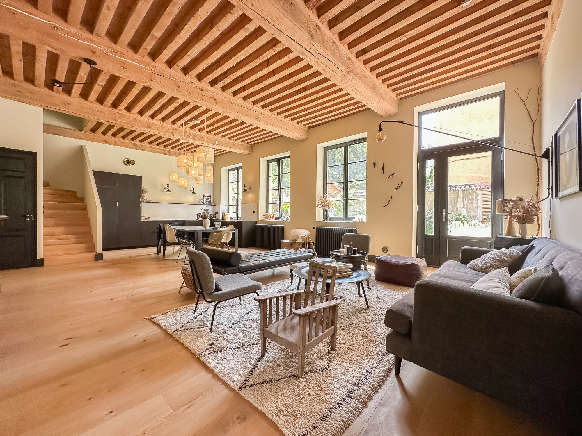 Située en plein centre du plateau de la Croix-Rousse, 500 m du métro du boulevard, dans une discrète petite impasse au calme, maison coup de cœur d'une surface d'environ 170 m² élevée sur trois niveaux plus cave. Elle est édifiée sur un terrain de 230 m². La rénovation récente (2021) d'une haute qualité a été conduite par les propriétaires, talentueux architectes d'intérieur.