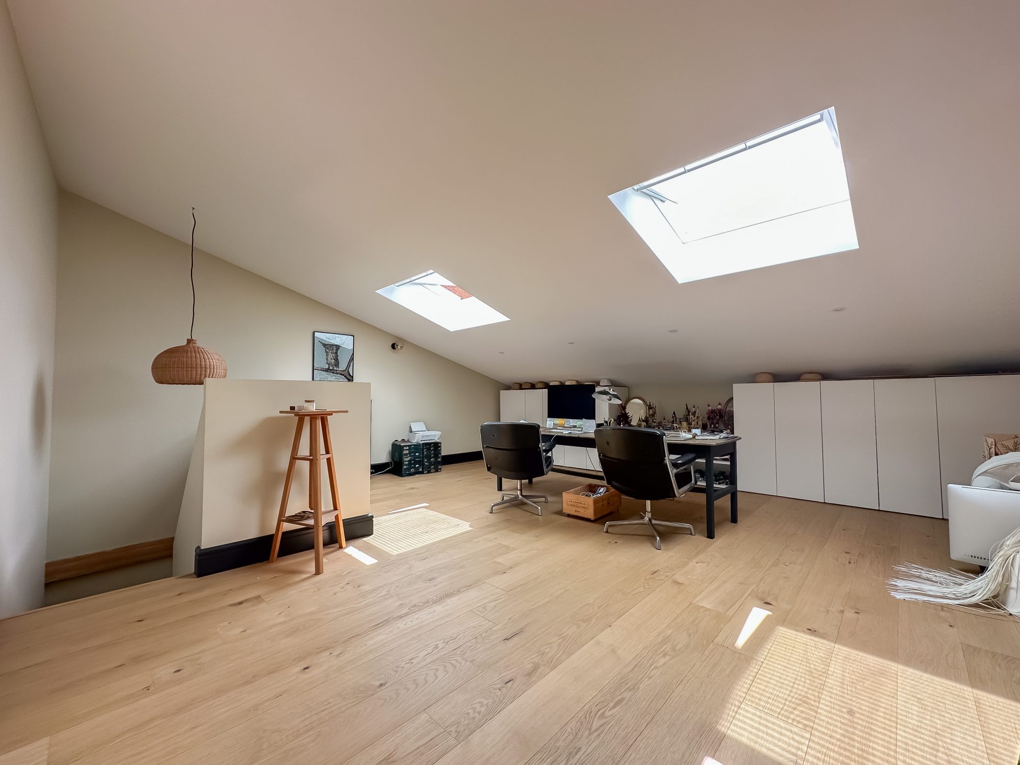 Un grand espace bureau ( possible 4éme chambre) puis une troisième chambre ayant un double accès de l'extérieur ou de l'intérieur.