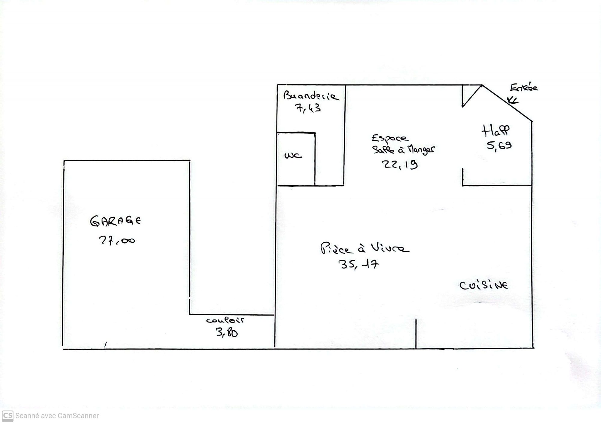 =) Accès garage de 27 m2 par couloir de 3.80 m2