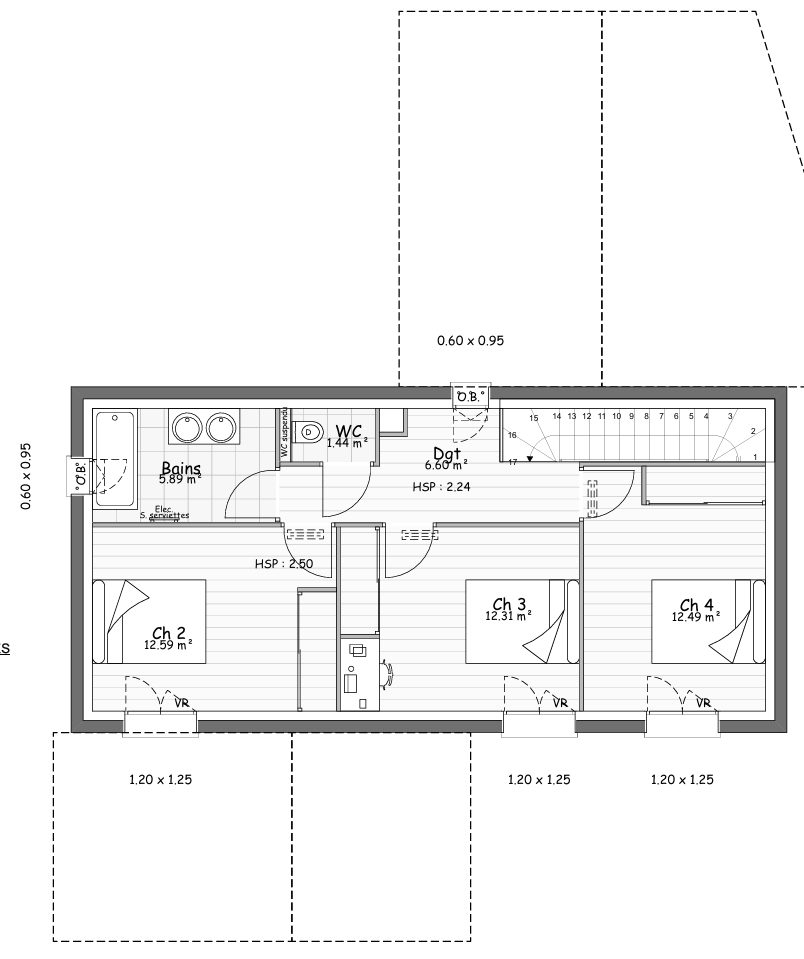 • À l’étage : 3 belles chambres de 12m², une salle de bains et un WC indépendant