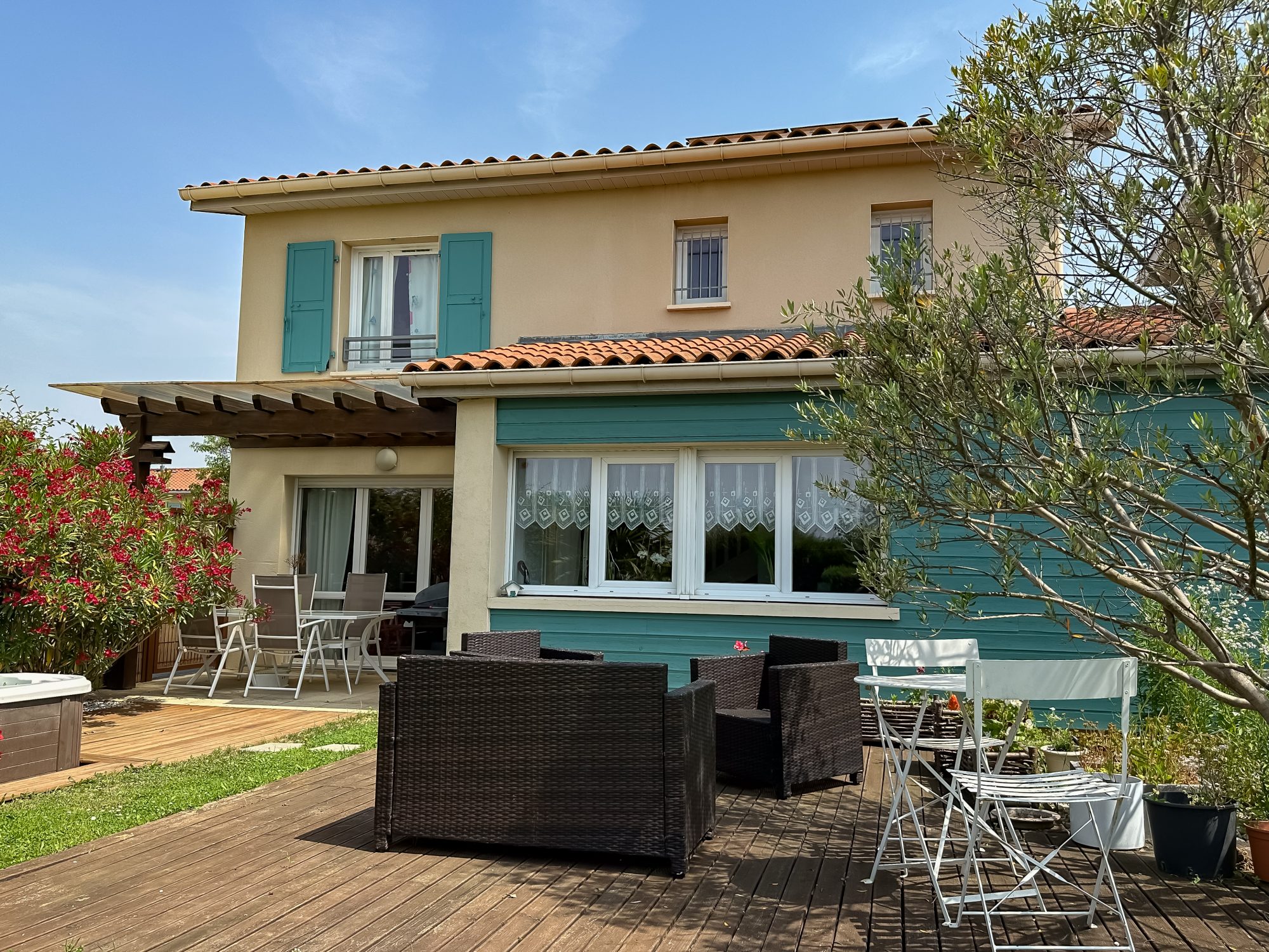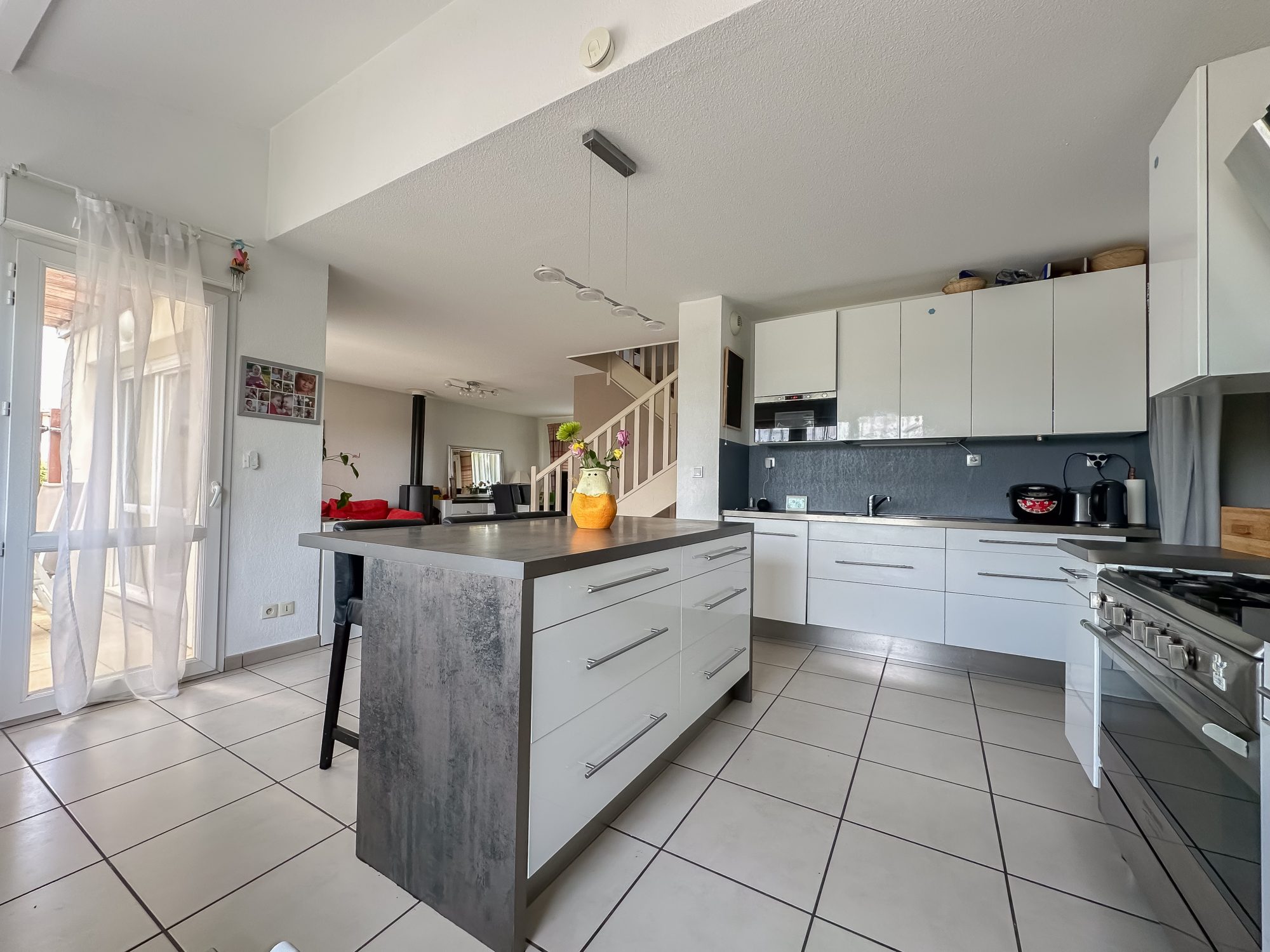 A VANCIA (69140) ,quartier résidentiel de Rillieux , venez découvrir cette maison de 112 m2 de type T5 mitoyenne d'un côté .Elle est exposée au Sud-Nord. La construction date de 2011, elle est édifiée sur un terrain de 369 m².