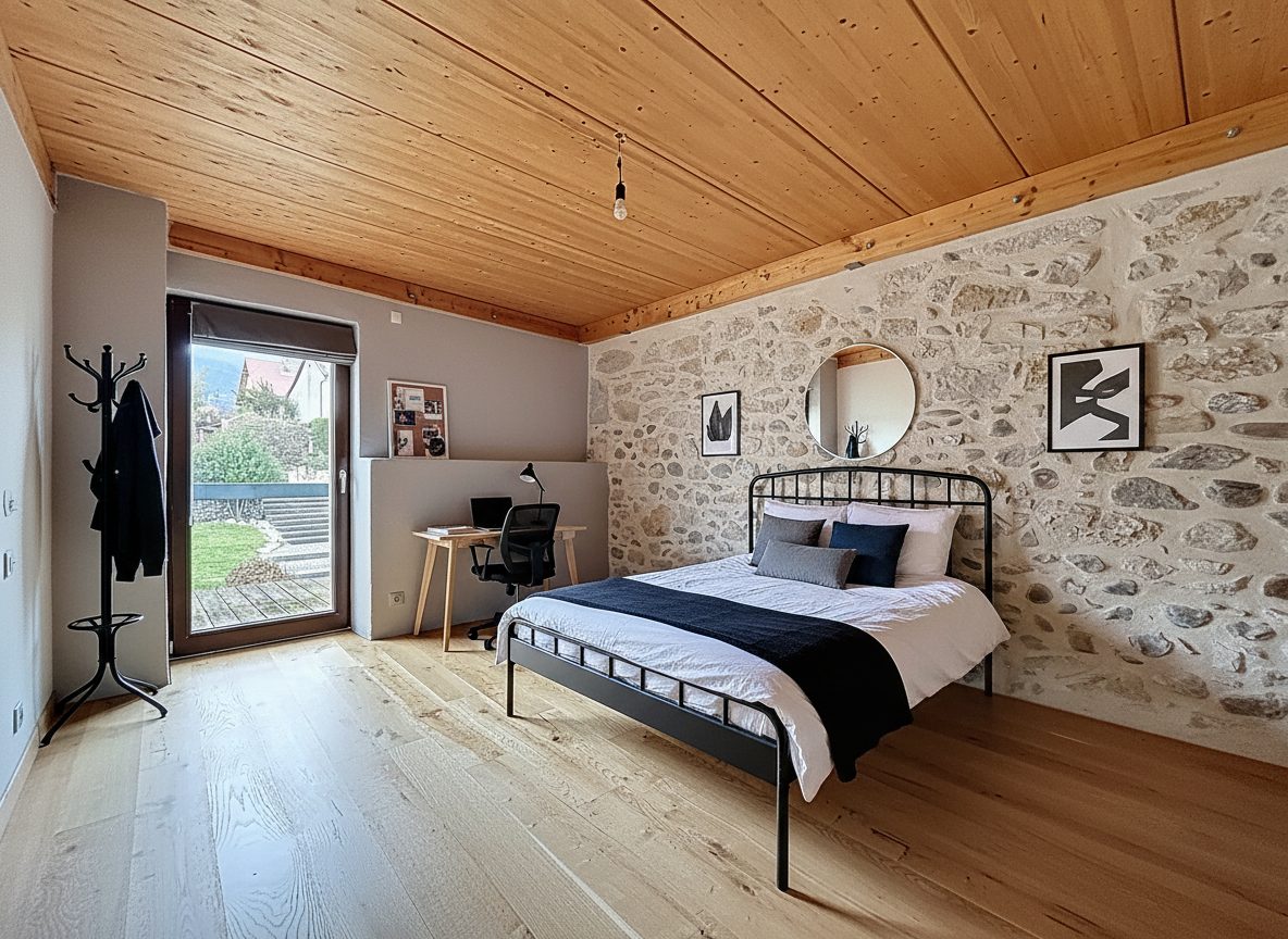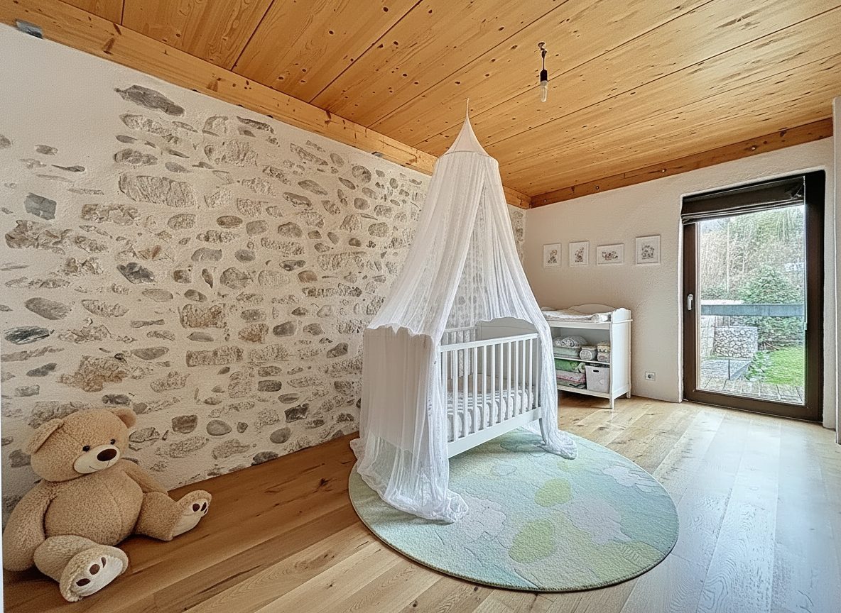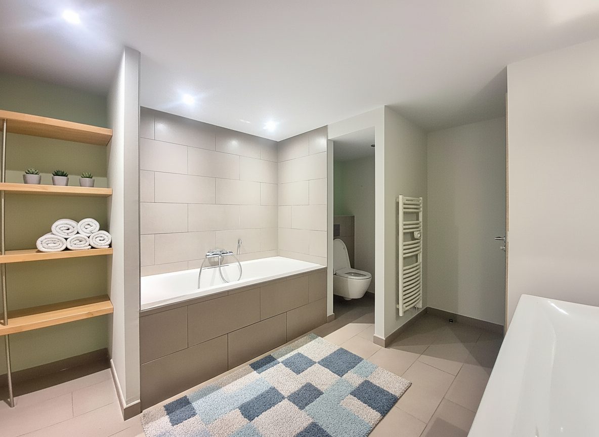 2 chambres lumineuses avec un balcon communiquant et placards intégrés, une salle de jeu ouverte sur l'étage, une salle d'eau spacieuse et une buanderie.