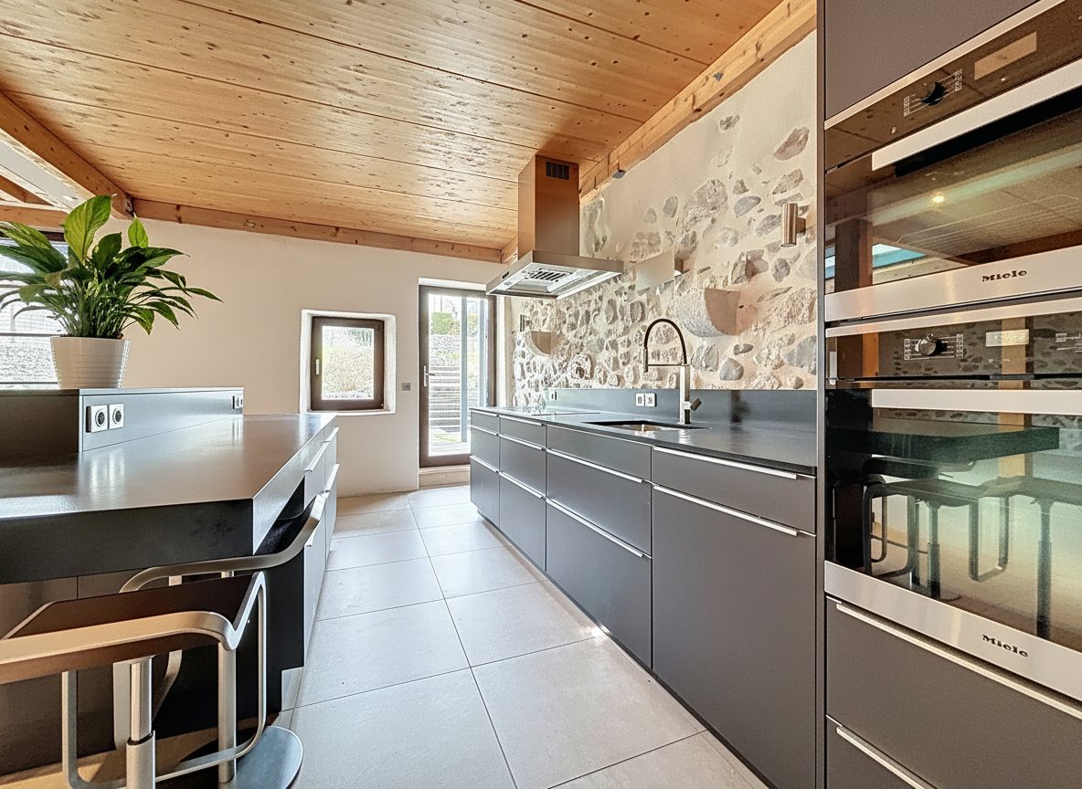 Une cuisine équipé, un séjour lumineux de 60 m2 donnant accès à la terrasse et son jardin. Une buanderie