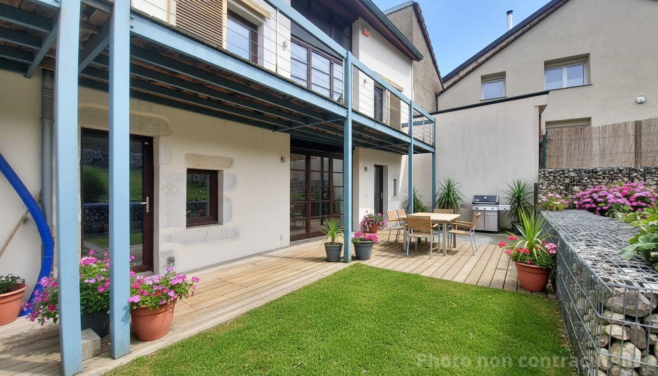 Maison mitoyenne située à Saint-Genis-Pouilly dans un secteur résidentiel calme et prisé, développe une surface d'environ 255m2.