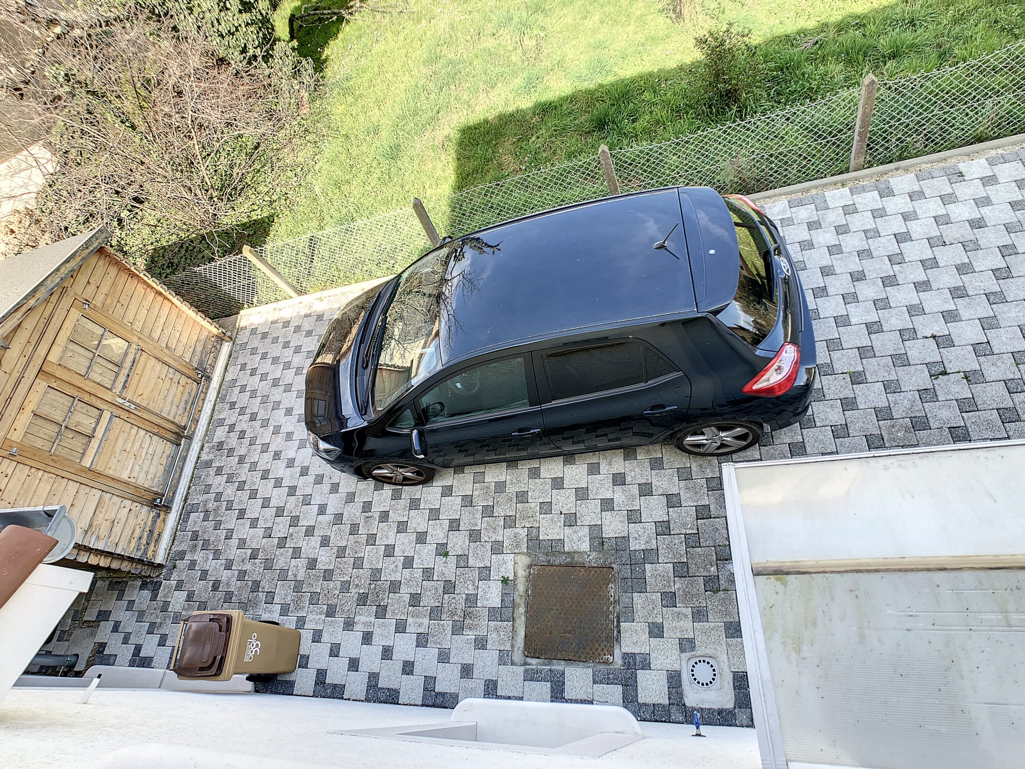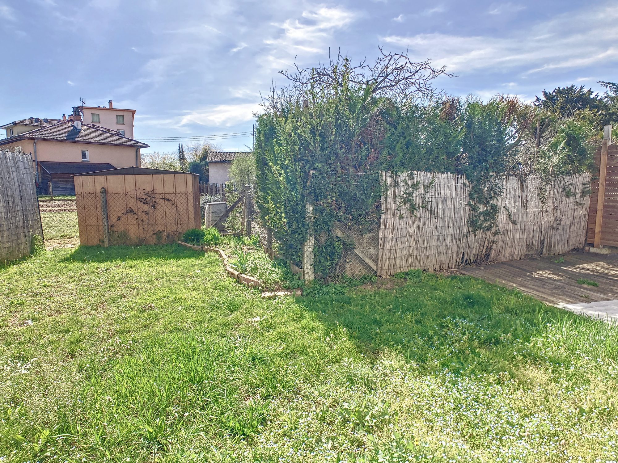 Une terrasse coté salon est également possible, même si ce jour, un cabanon occupe l'espace
