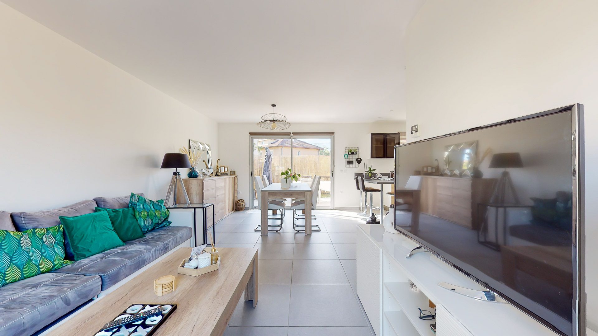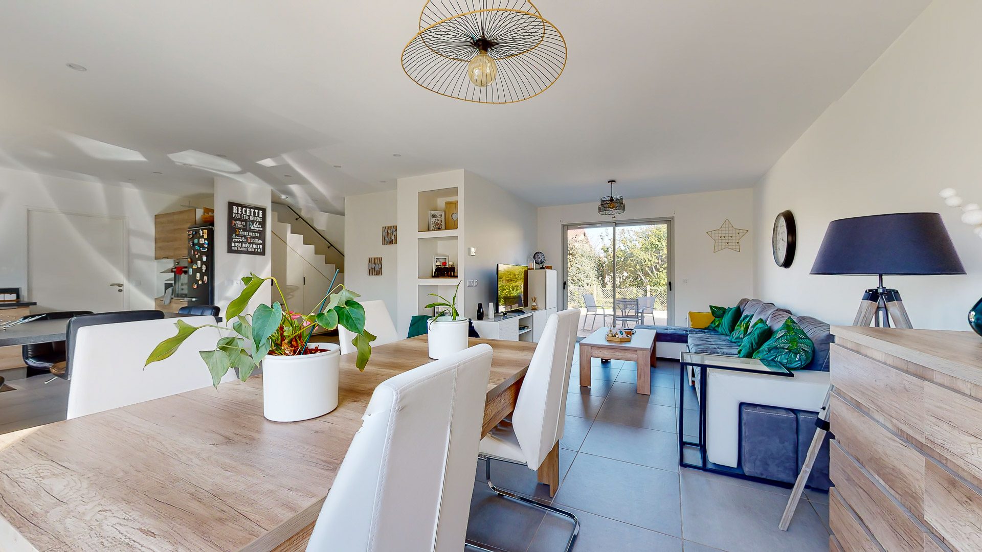 Maison aux normes RT2012 - mitoyenne par le garage (double mur) le garage peut devenir une chambre, la salle d'eau du RDC étant PMR