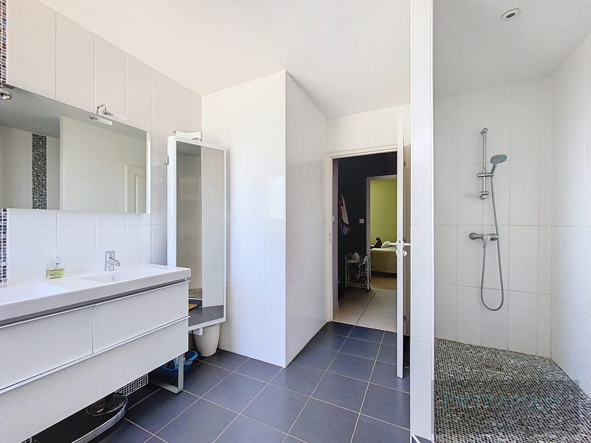 Au rez-de-chaussée, vous serez séduit par le vaste séjour de 40 m², baigné de lumière grâce à ses grandes ouvertures en PVC à double vitrage. La cuisine américaine équipée, moderne et fonctionnelle, est parfaite pour les repas en famille ou entre amis. Les trois chambres spacieuses, dont deux avec salle d'eau attenante, garantissent intimité et confort. Une terrasse de 30 m² et un jardin de 1360 m² complètent ce havre de paix, offrant un espace extérieur idéal pour les journées ensoleillées.