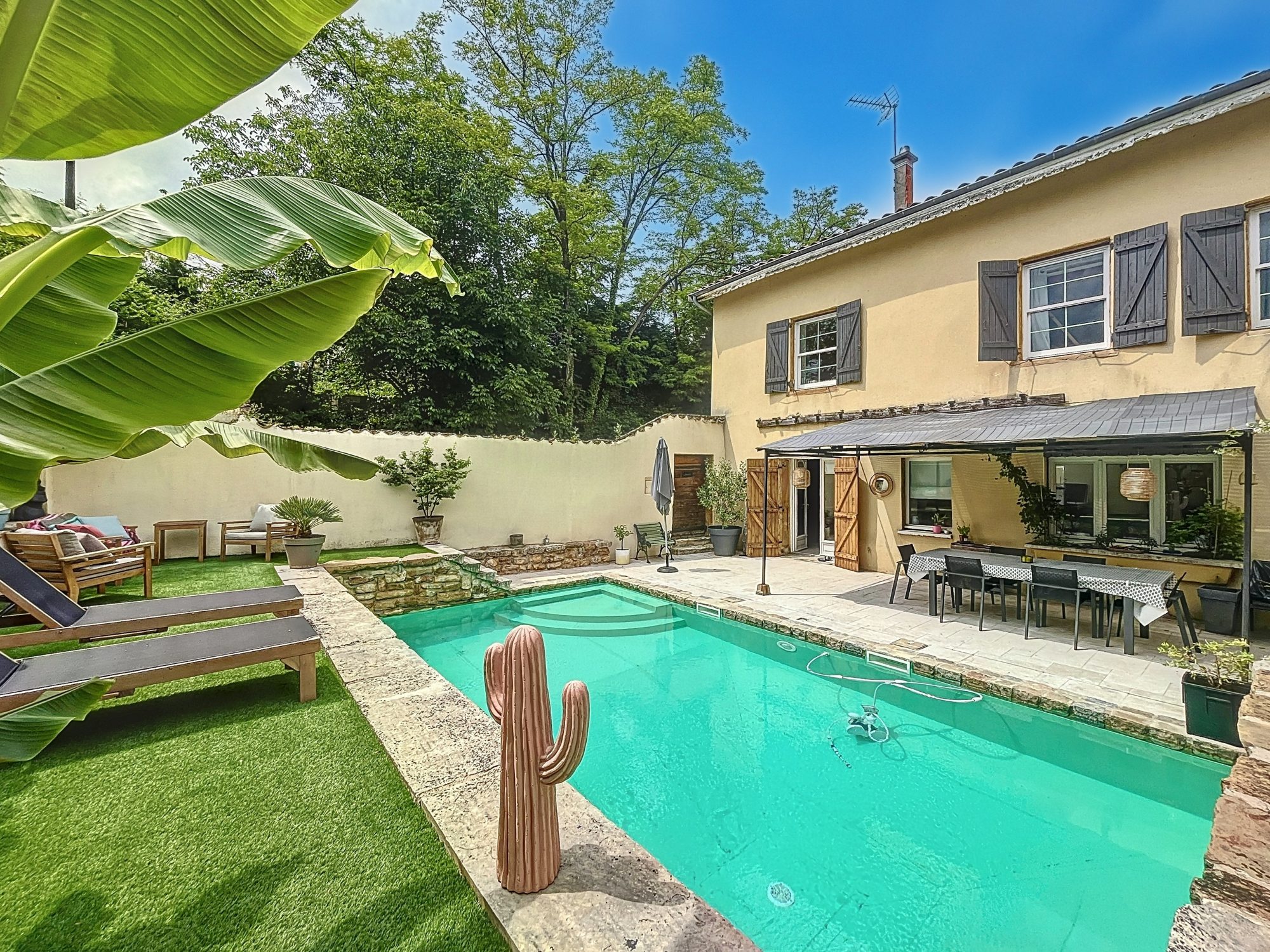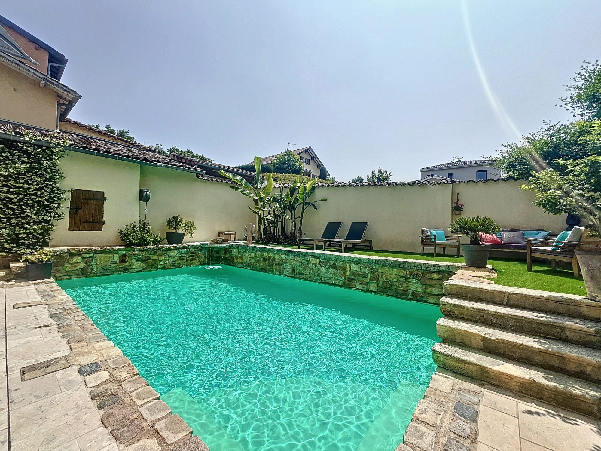 Maison de caractère rénovée avec goût – 150 m², jardin, piscine, 4 chambres – Sathonay-Village (limite Cailloux-sur-Fontaines)