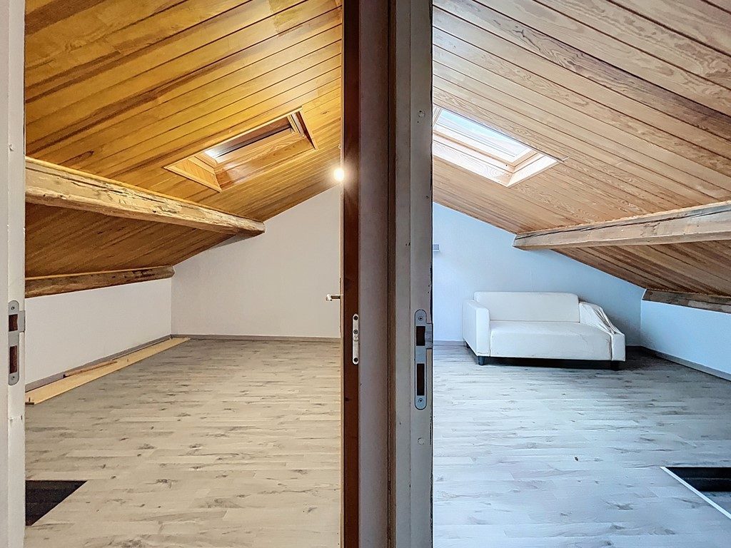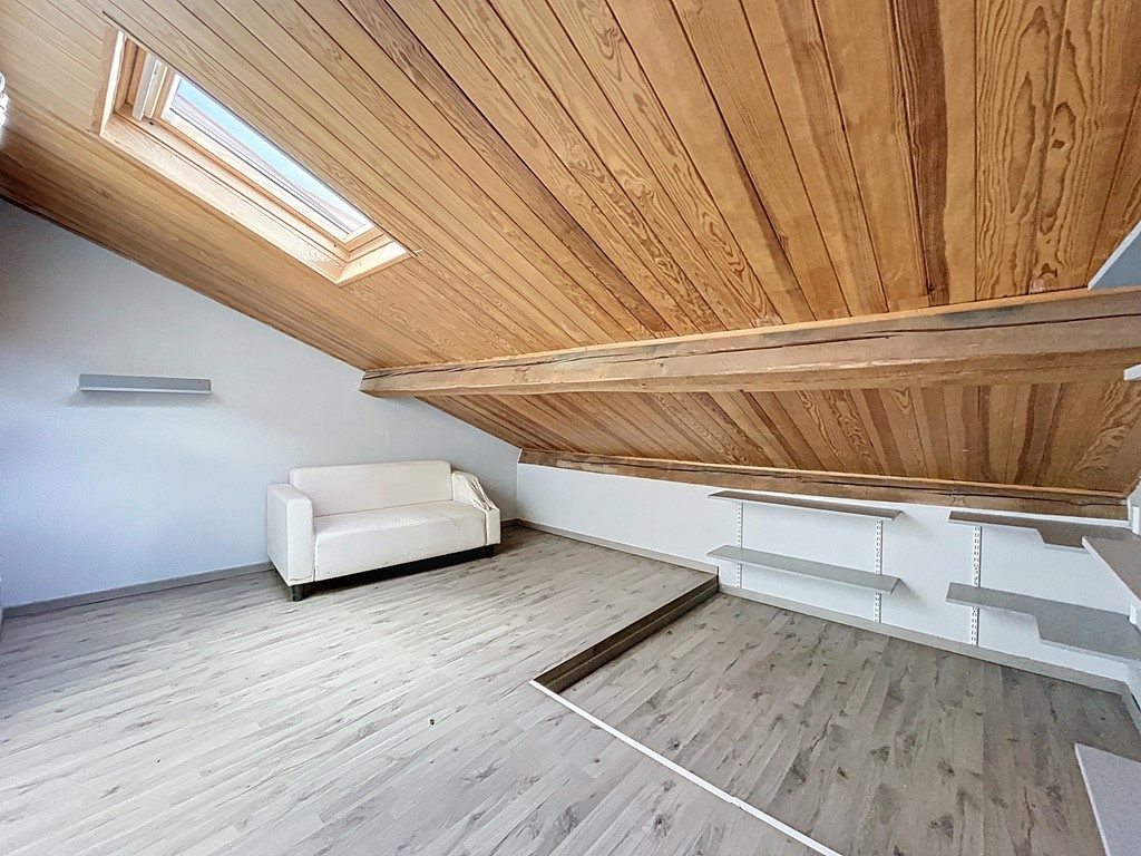Le second logement communique par une porte dans le bureau du premier logement et par une entrée indépendante. Elle nous hisse par un escalier à une agréable pièce de vie avec cuisine indépendante de 16 m² et un salon de 24 m² pouvant faire office de chambre. À l’étage supérieur, on découvre un palier, deux chambres supplémentaires et une salle d’eau.