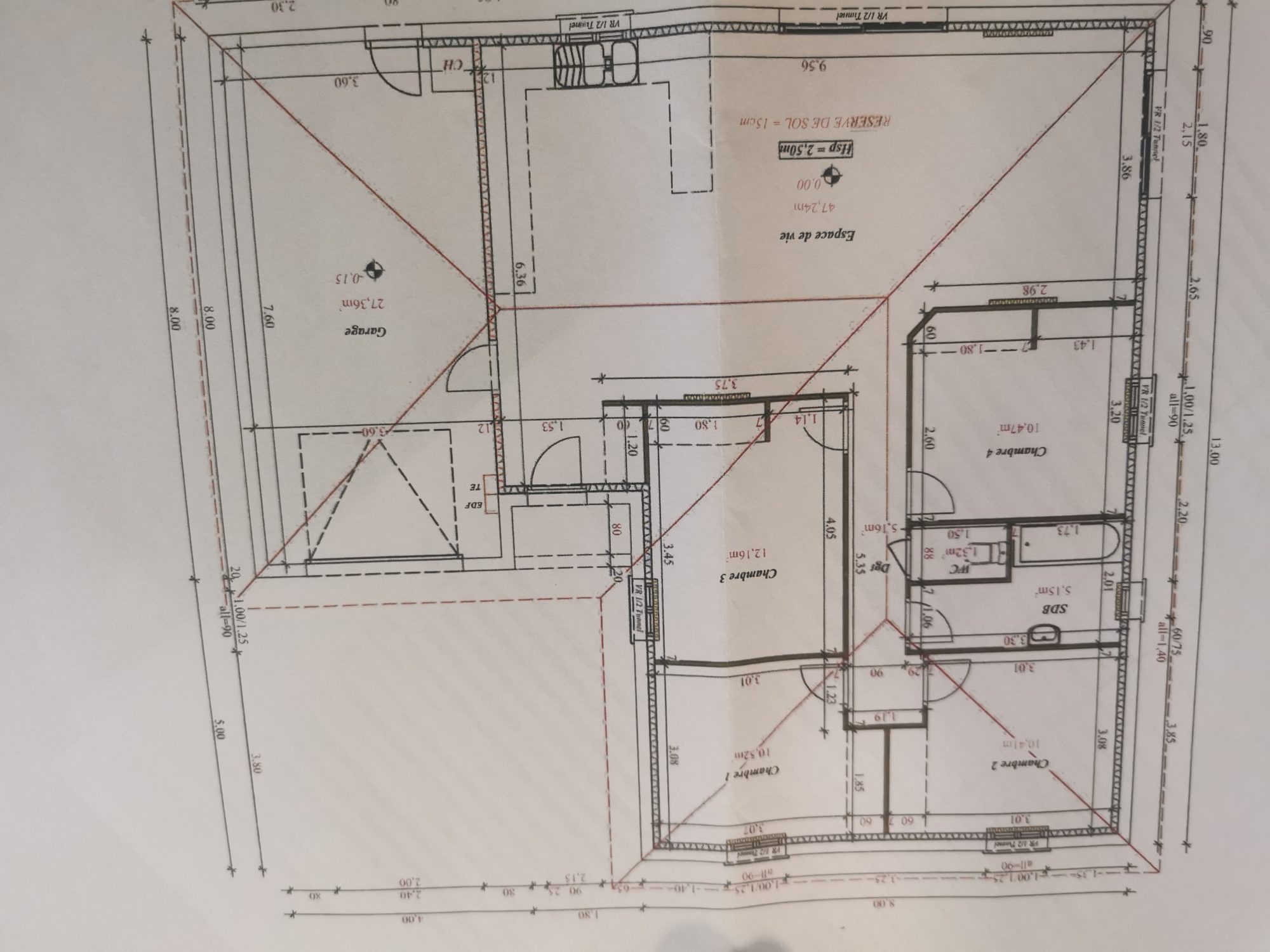 - Pièce de vie avec entrée, cuisine équipée, salon séjour: 47.24 m²
