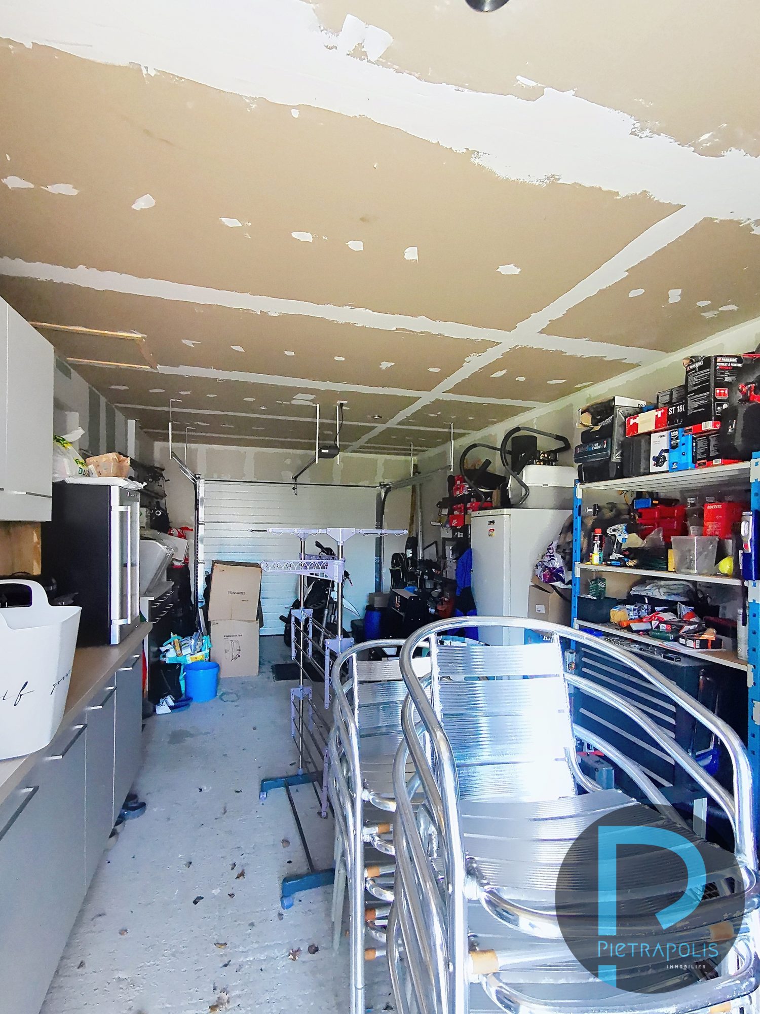 Un garage de 27 m² avec coin buanderie et cuisine d' été.