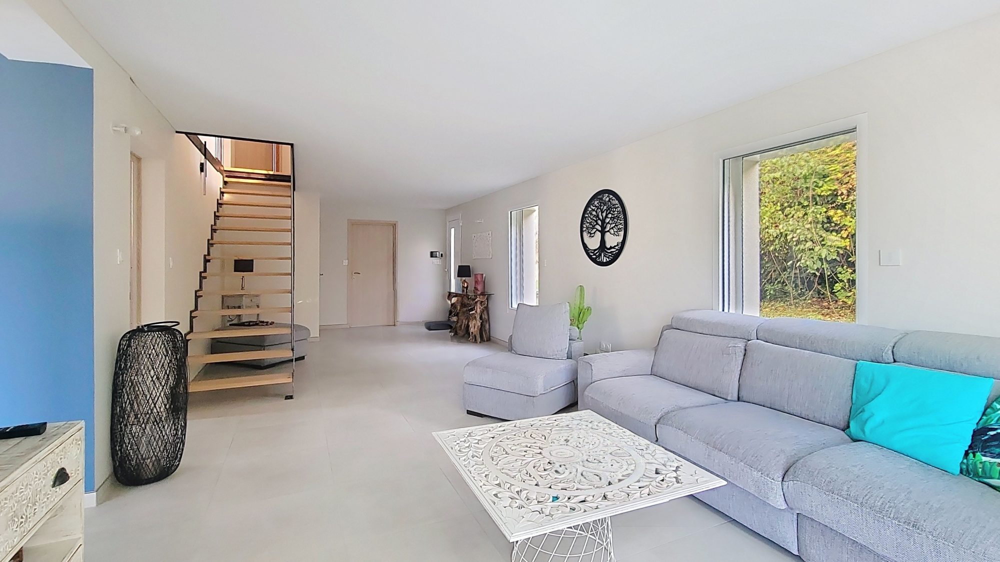 - Grande Pièce à vivre ouverte sur les extérieurs qui mène à la cuisine américaine équipée et lumineuse