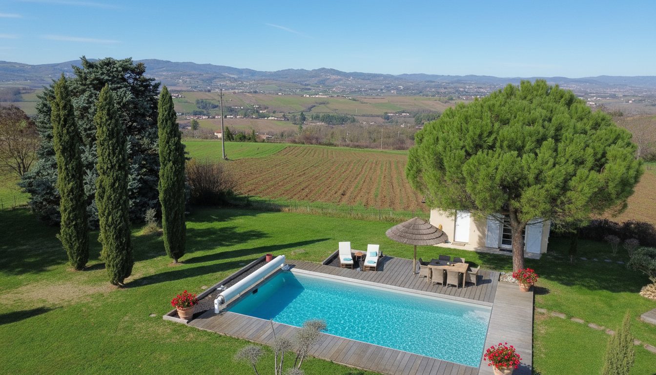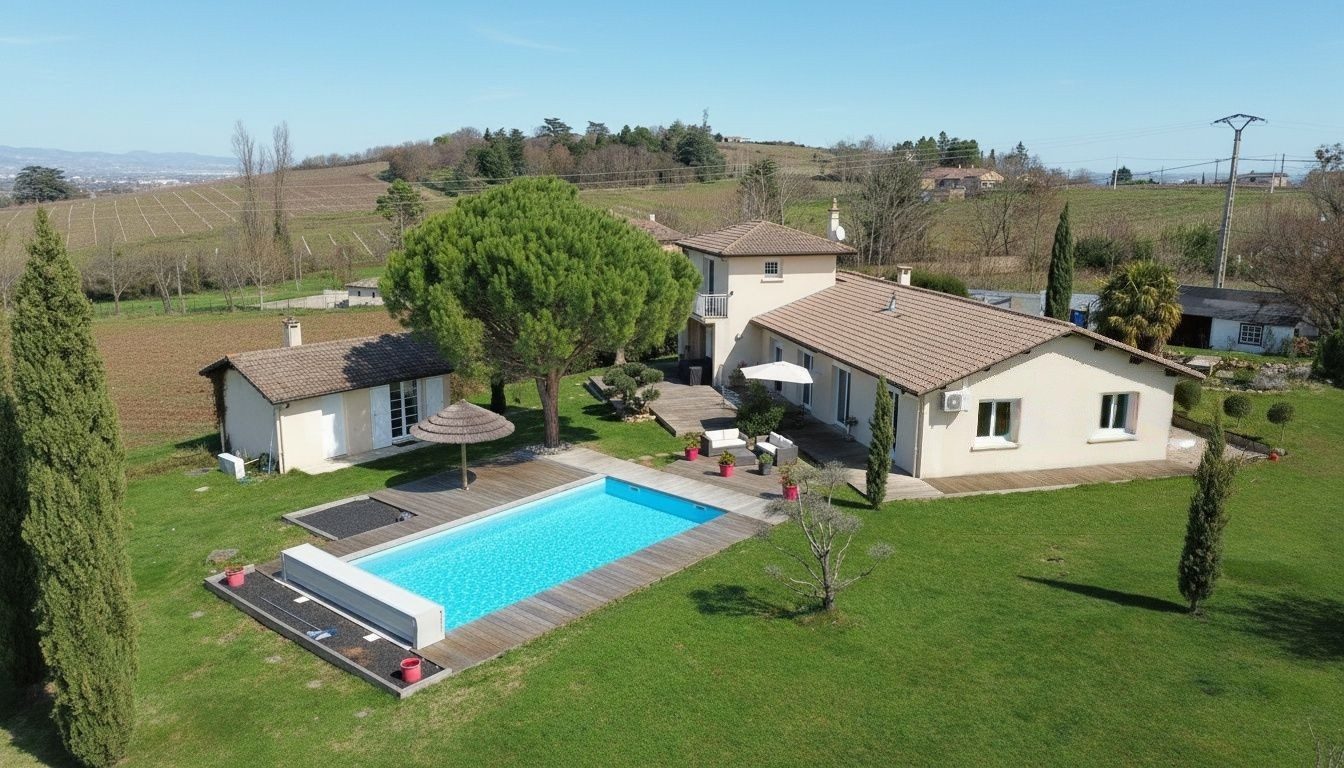 Pommiers - Villa 160m² 4 chambres, piscine, vue panoramique et studio indépendant