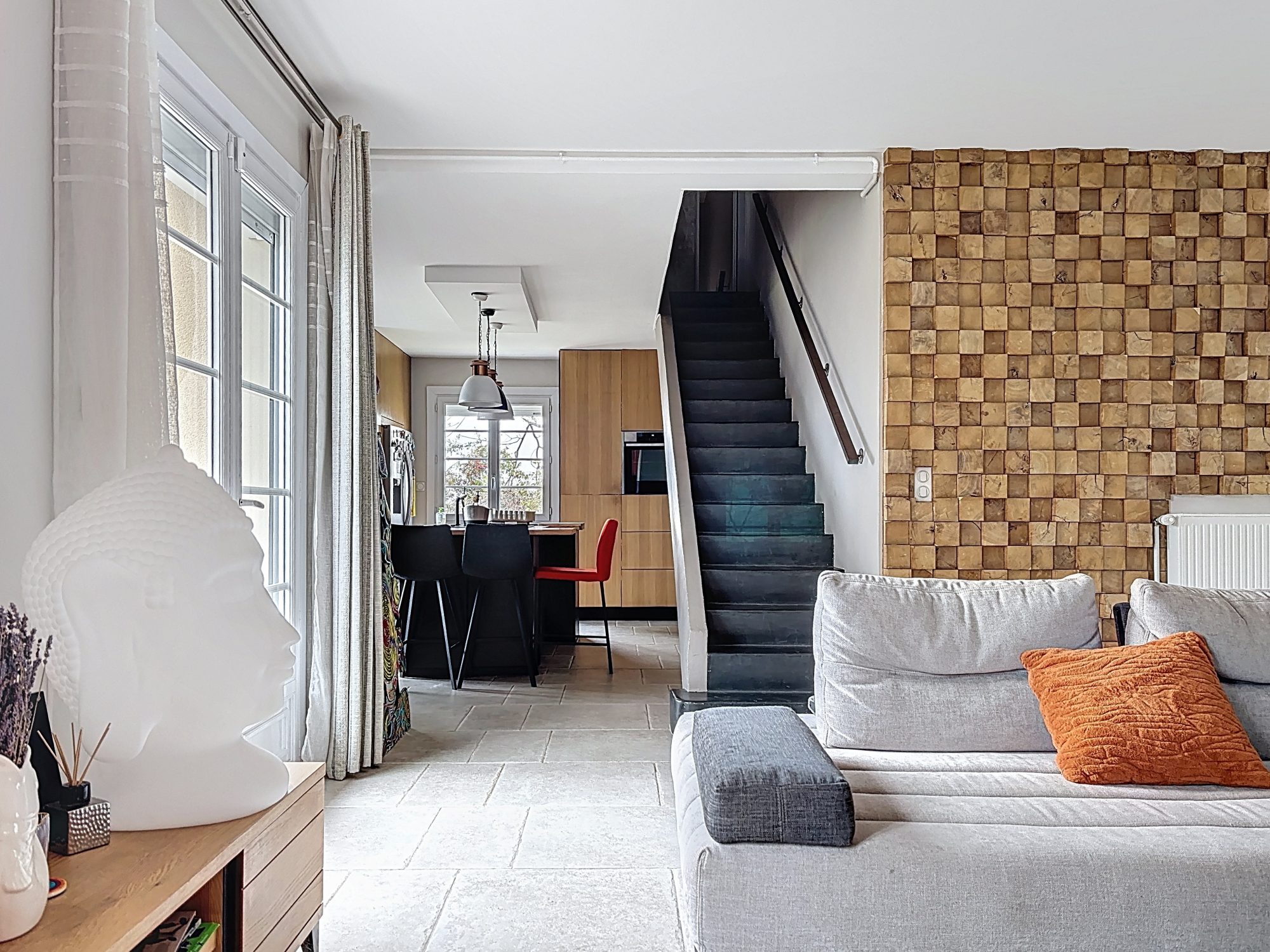 Au rez-de-chaussée, d'un spacieux séjour de 48 m² lumineux exposé Sud/Ouest, d'une cuisine aménagée et équipée, d'une salle à manger, et d'un espace nuit composé de 3 chambres et salle d'eau et WC indépendant.
