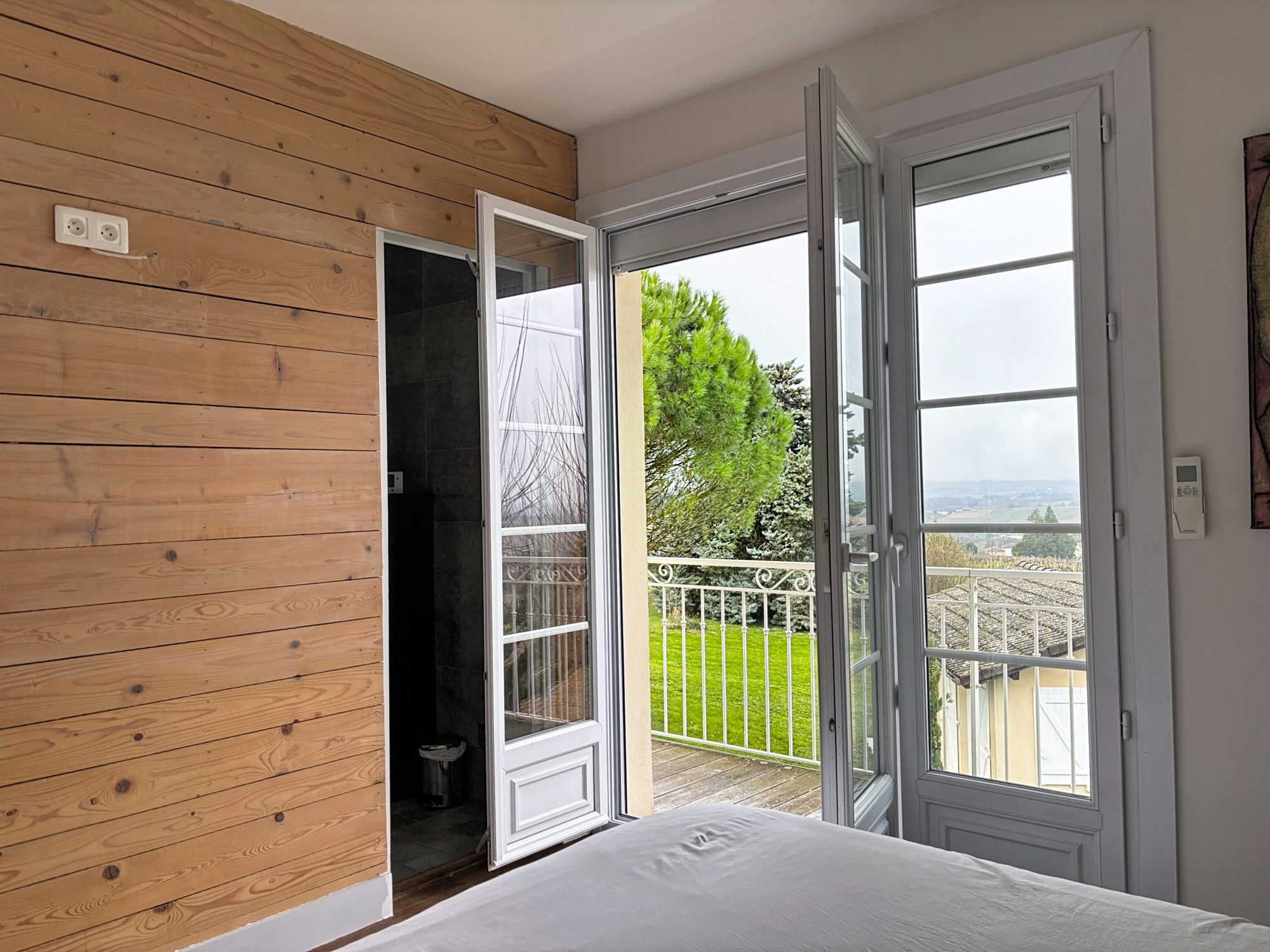 À l'étage, la 4ème chambre avec sa salle d'eau et son WC donnant sur un balcon d'environ 6m² avec une vue qui fera des envieux