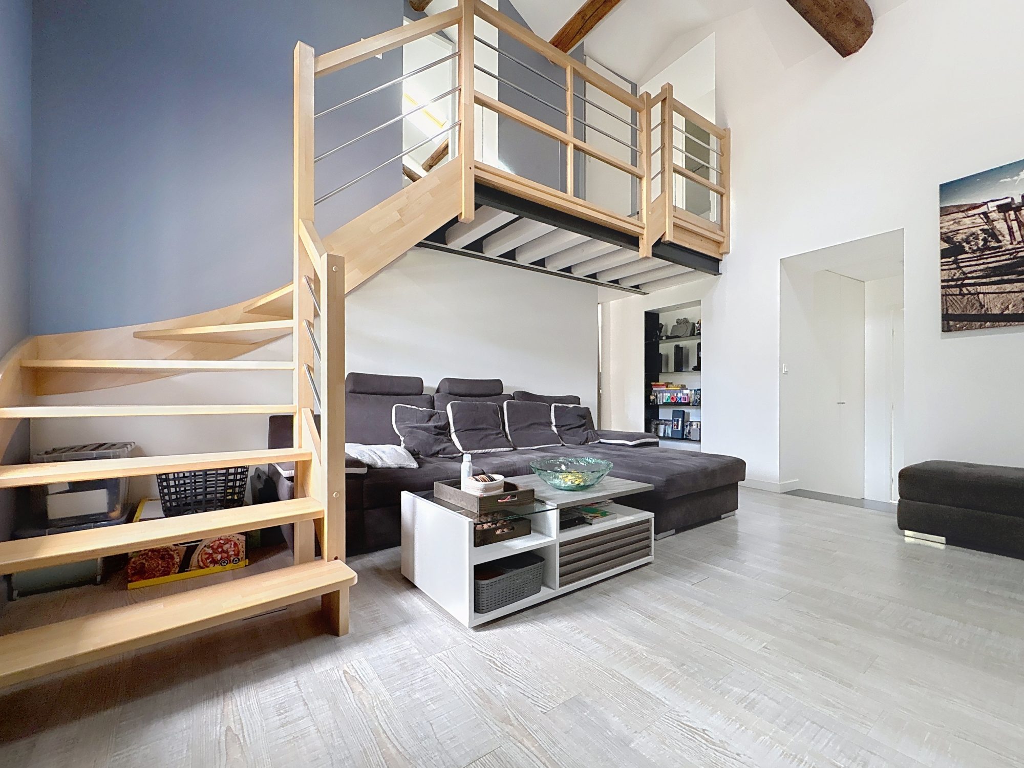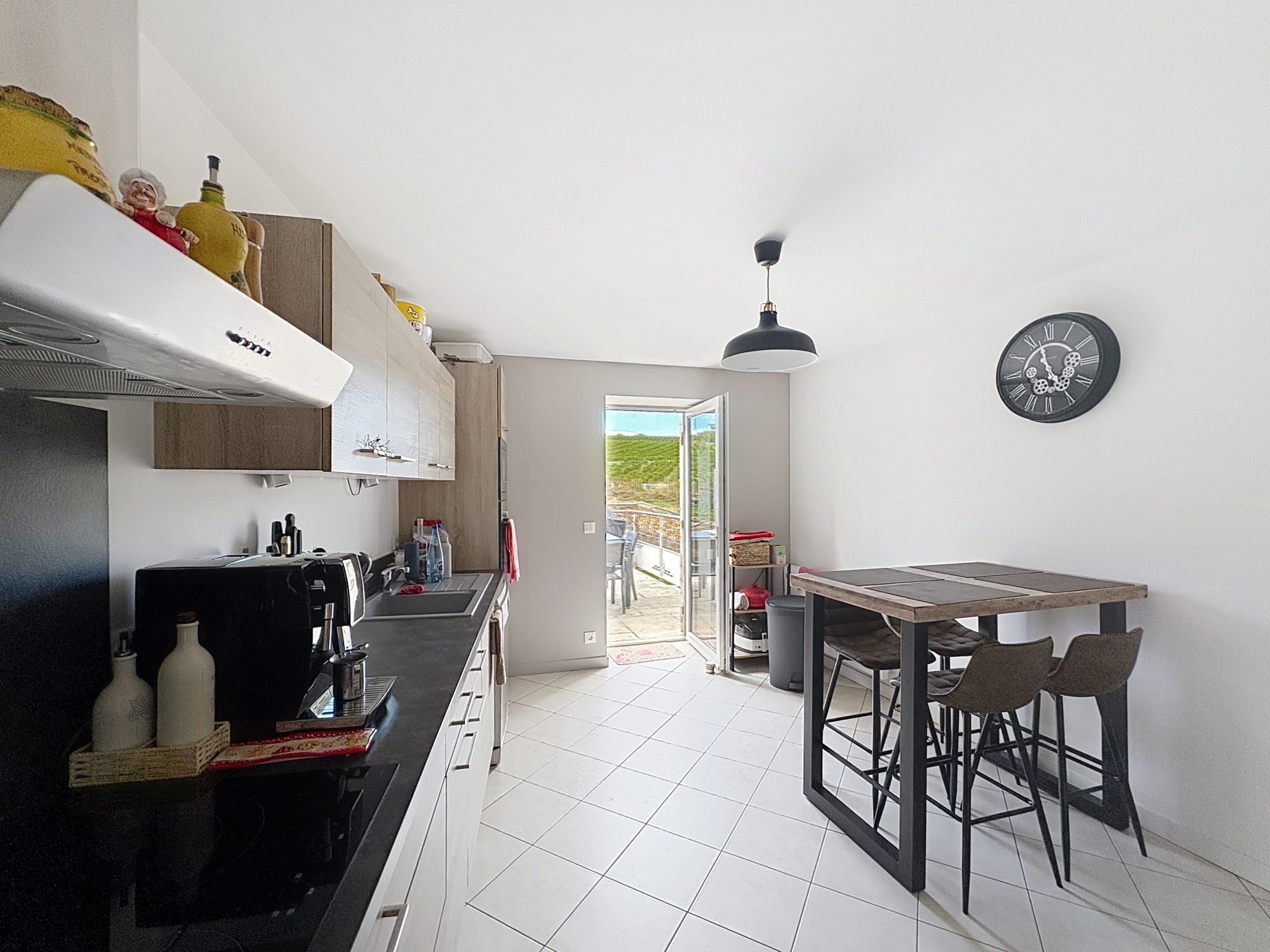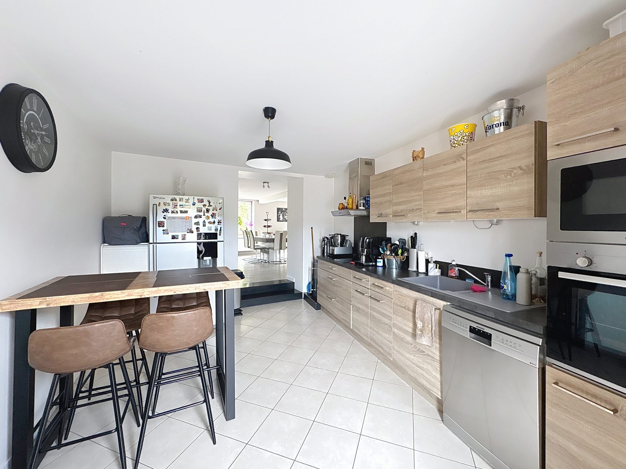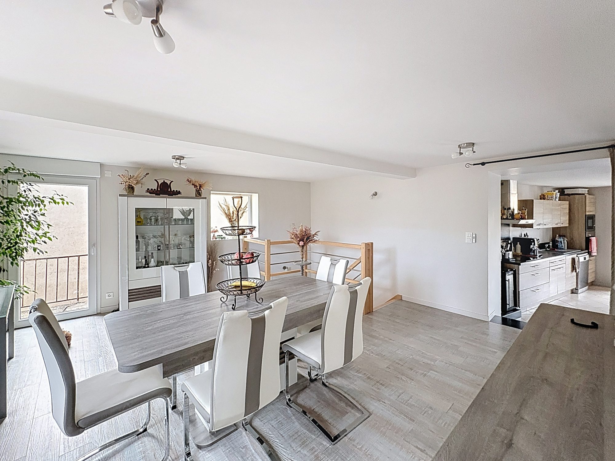 Au premier étage, vous trouverez une salle à manger lumineuse, une cuisine équipée et fonctionnelle avec un accès directement sur la terrasse et le jardin, un salon chaleureux, une chambre ainsi qu’un WC. L’espace de vie est pensé pour la convivialité et le quotidien.