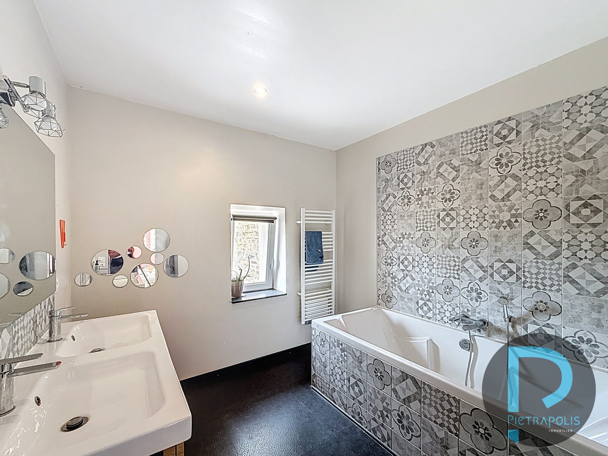 - Salle de bains avec baignoire, double vasques et sèche serviettes: 7.5 m²