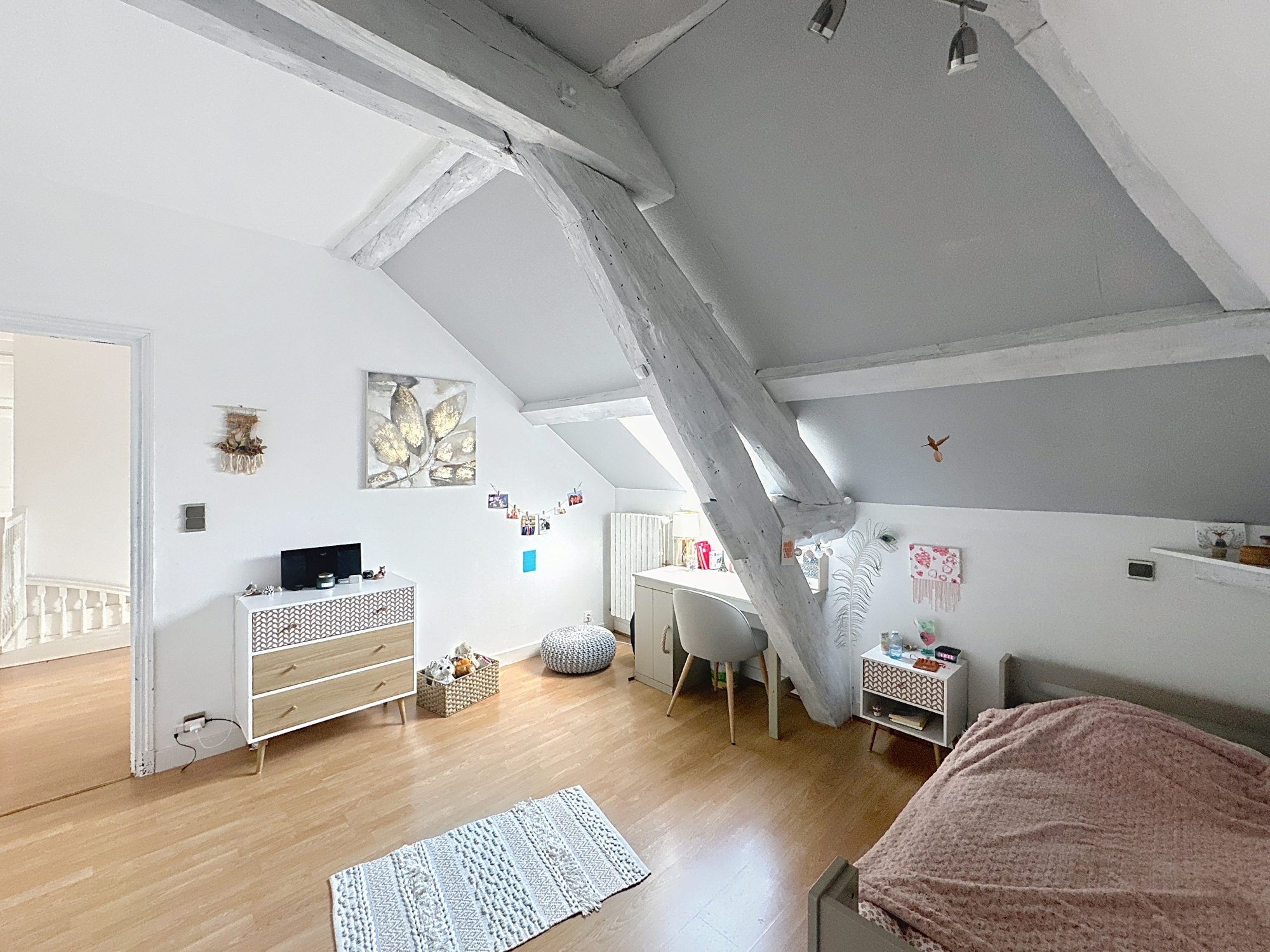 À l’étage, accessible par un bel escalier, se répartissent quatre chambres, une salle d’eau avec WC ainsi qu’une mezzanine pouvant accueillir un espace bureau.