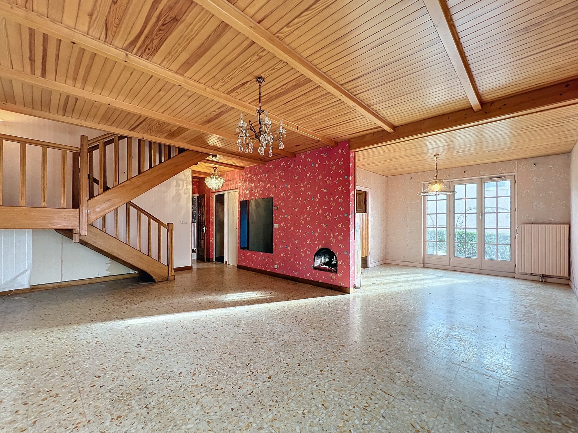 La maison répartie sur deux niveaux, offre au rez-de-chaussée une belle pièce de vie de 34m2, une cuisine, d'une chambre, une buanderie et un WC, le tout baigné de lumière.