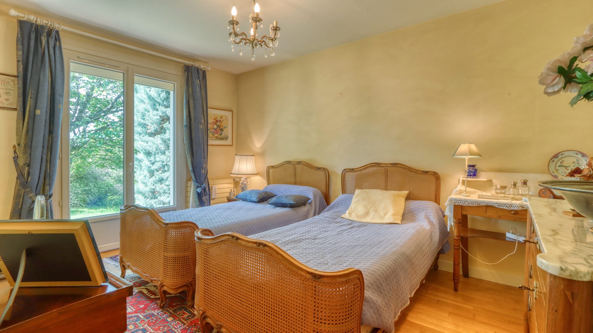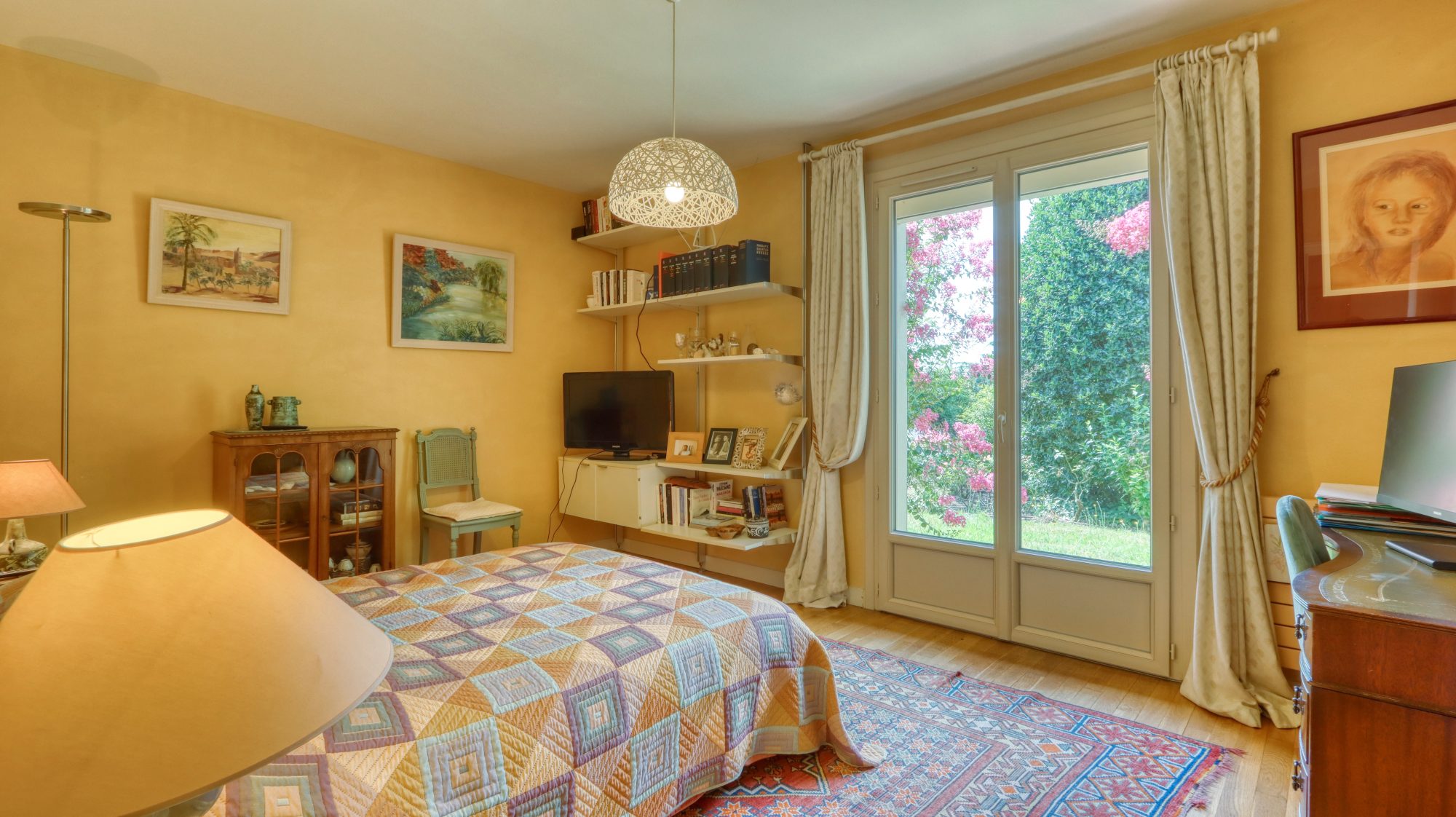 Côté nuit, trois grandes chambres allant jusqu'à 15 m² sont présentes en rez-de-jardin ainsi qu'un dressing, salle d'eau et des sanitaires.