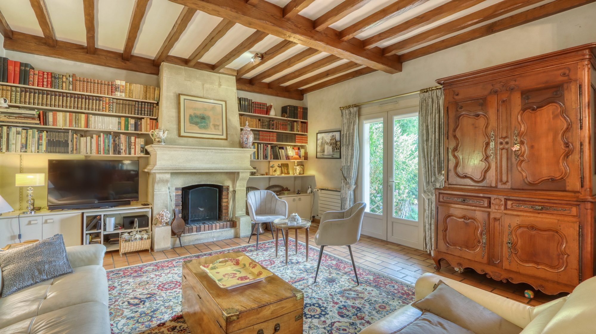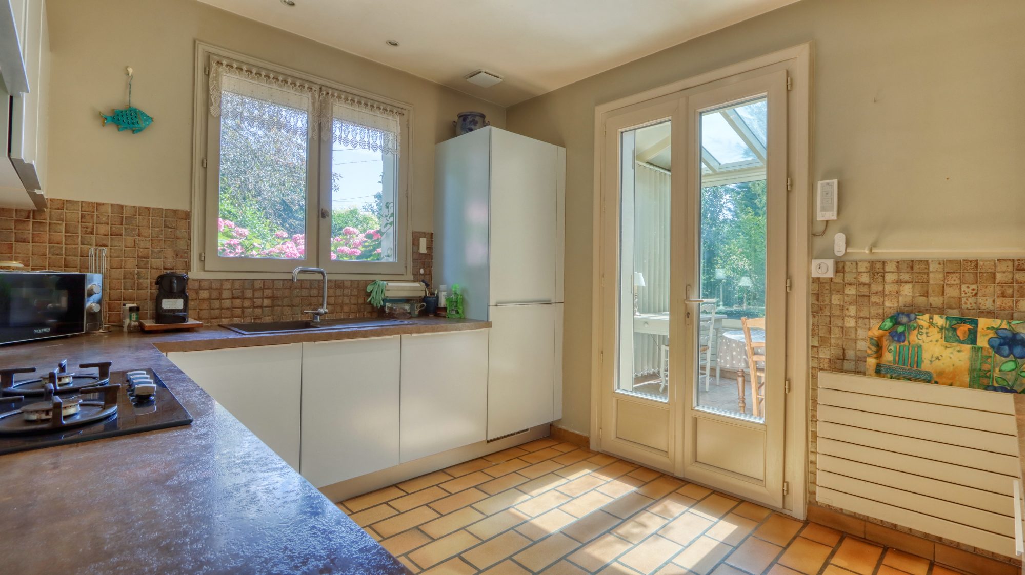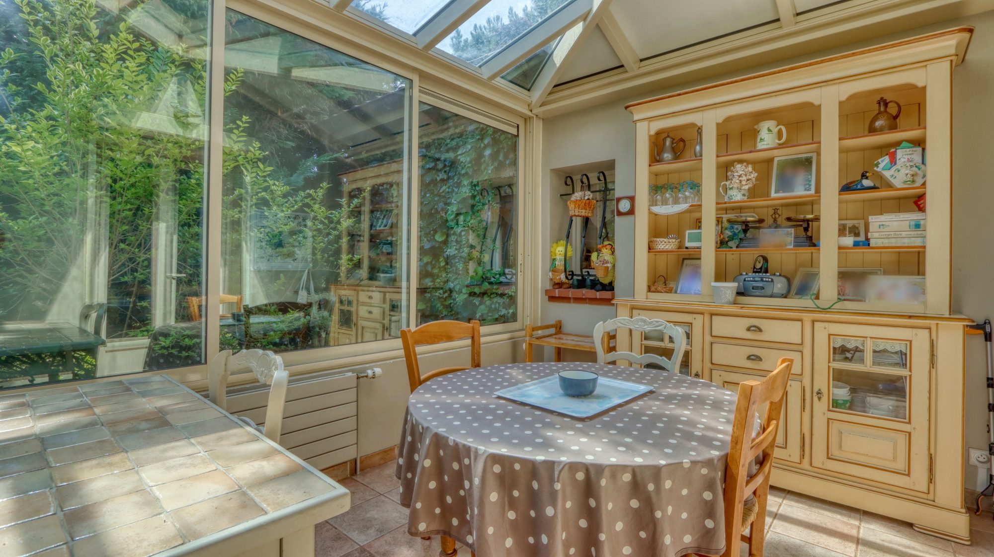 La propriété propose un grand salon et salle à manger de plus de 47 m² avec sa cuisine attenante ainsi qu'une véranda pour des petits déjeuner dedans-dehors.