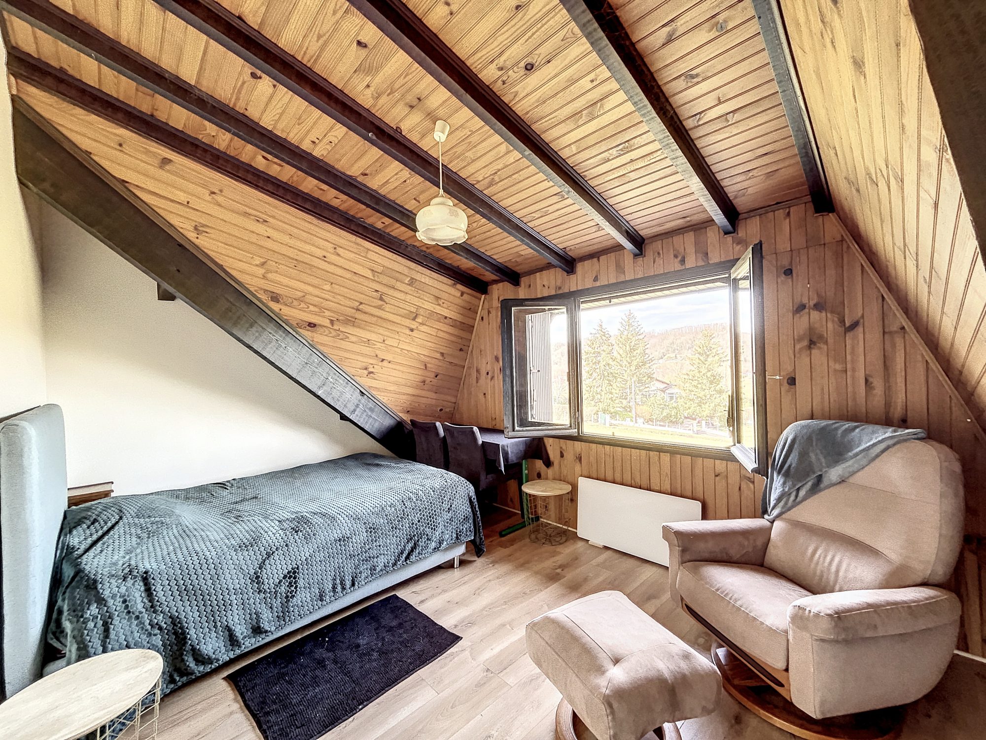 L'étage se compose comme suit : Une entrée, une superbe pièce de vie traversante, espaces séjour / salon avec une cheminée à insert, accès à une véranda ou vous pourrez profitez une belle vue dégagée sur la propriété. Une cuisine équipée, toilettes, 2 chambres et une salle de bains complète le premier étage.