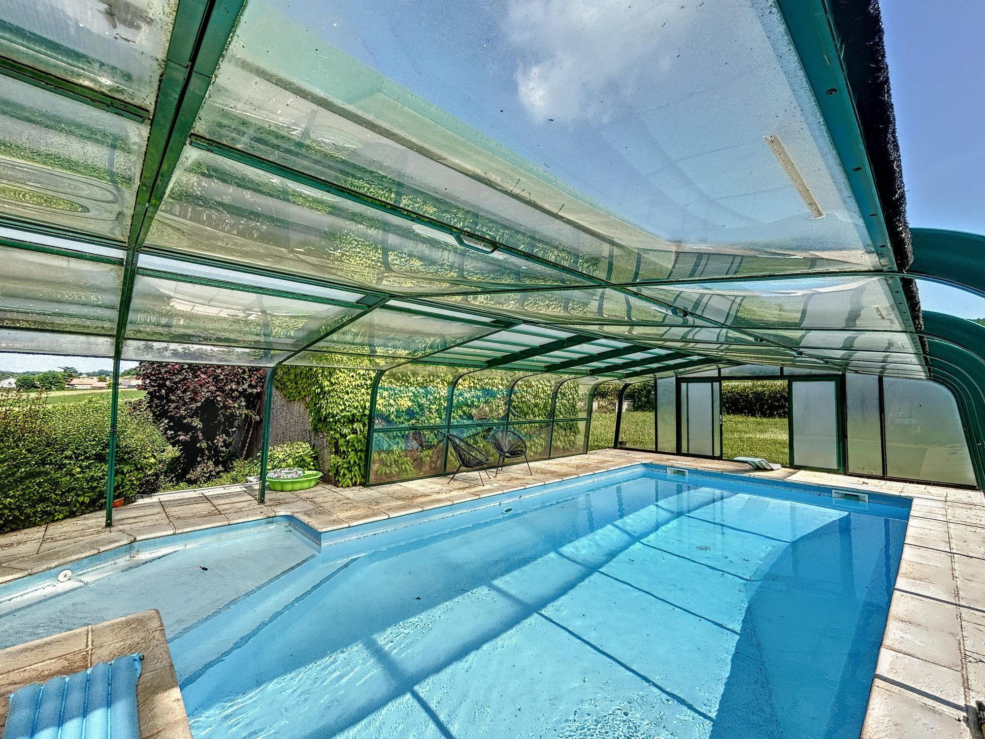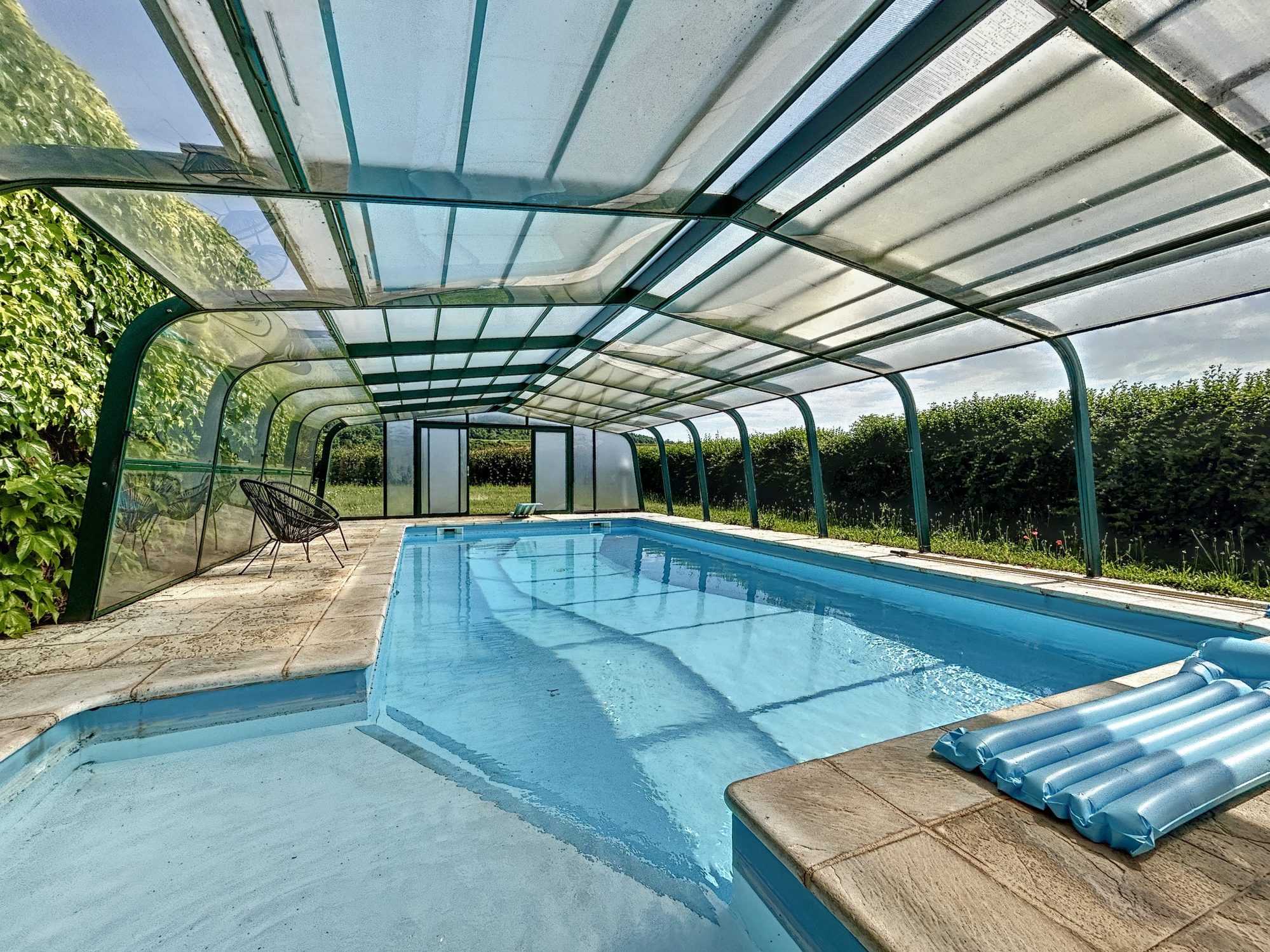 En extérieur : Pour un confort optimal, vous pourrez profiter d'une piscine couverte, une dépendance pouvant être transformée en cuisine d'été, ou autre, La propriété vous offre un magnifique parc paysager, avec des arbres fruitiers, un bassin avec des poisons.
