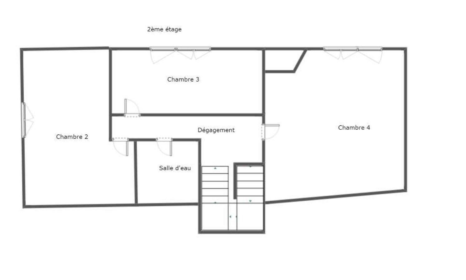 2eme ÉTAGE : un dégagement dessert, 3 chambres, dont une d'environ 40 m2, une salle d'eau avec toilettes.