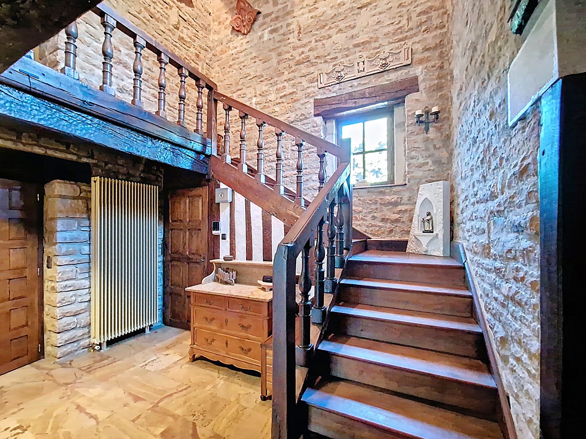 Cette habitation avec sa tour, en pierres qui fut construite dans le courant des années 70, de près de 200m² habitables, a des qualités évidentes : une situation calme, un grand parc attenant, un double accès carrossable, une très bonne performance énergétique, deux terrasses, un sous-sol complet, de grandes pièces avec de beaux volumes et un agencement bien pensé...