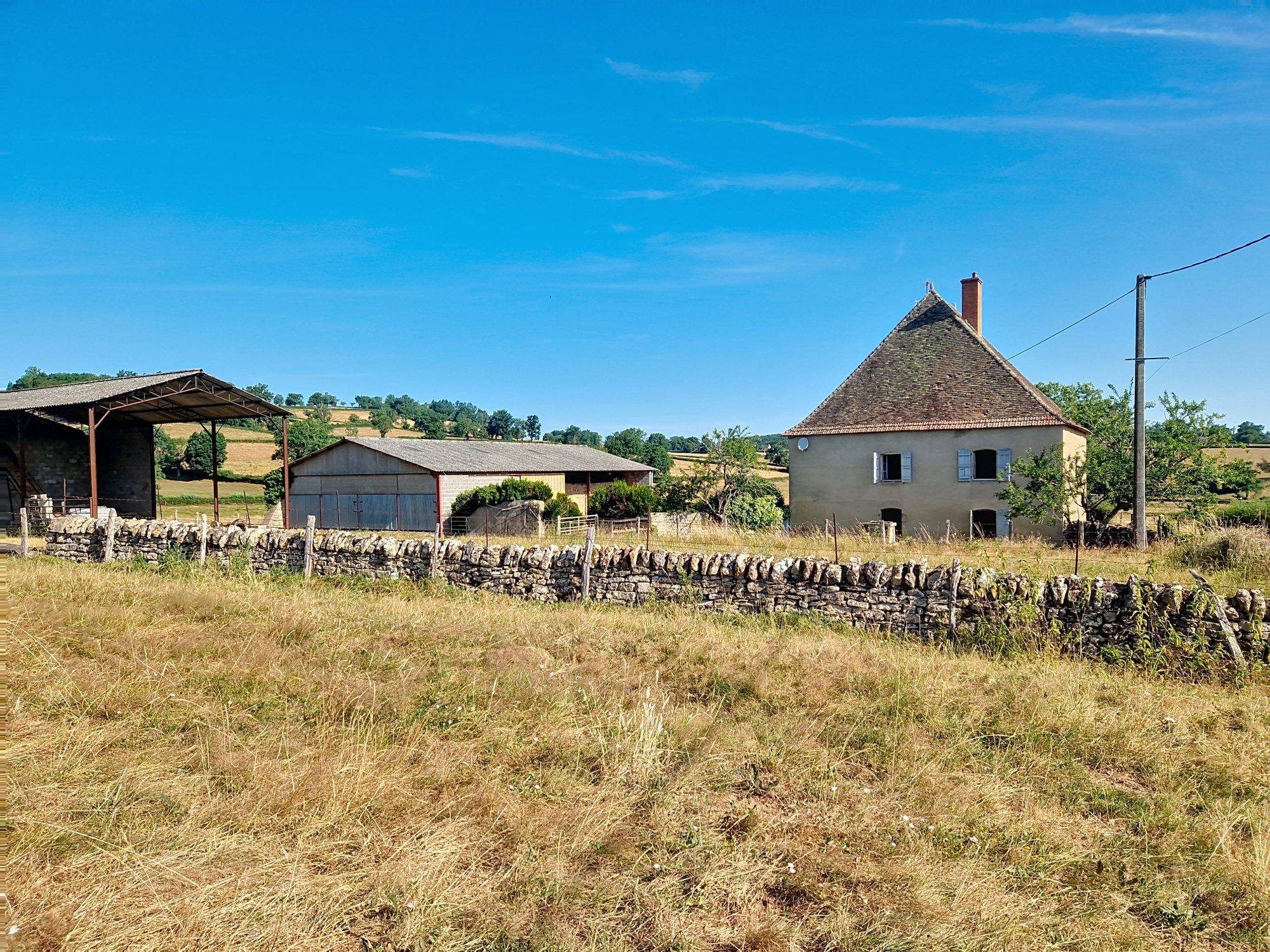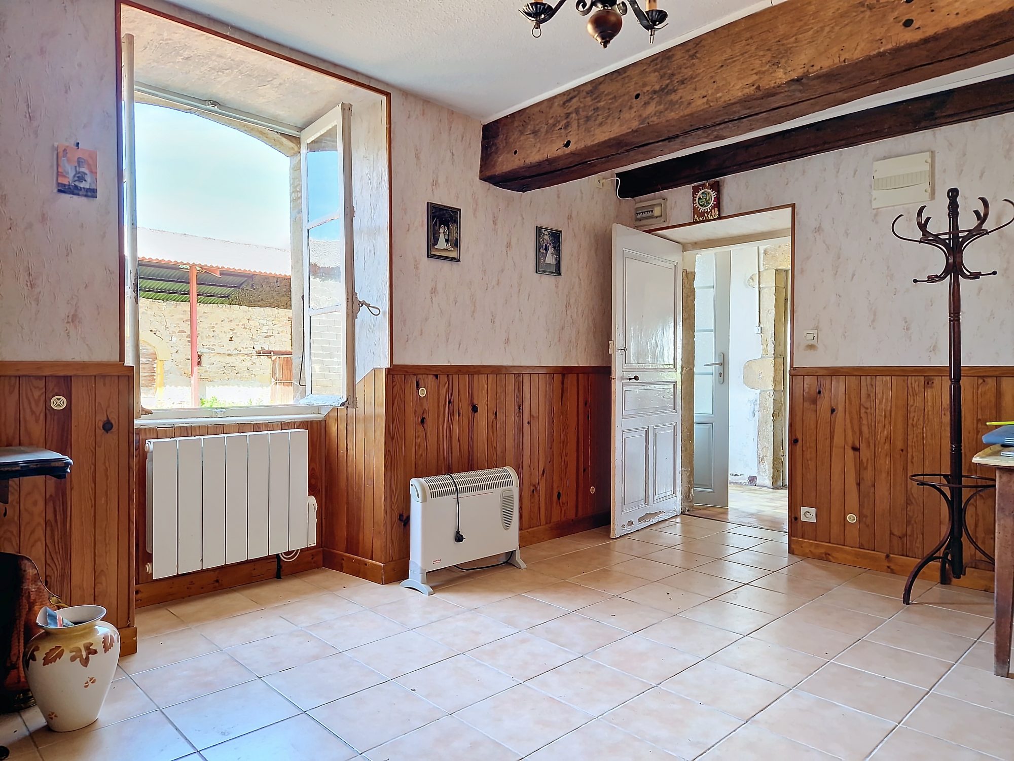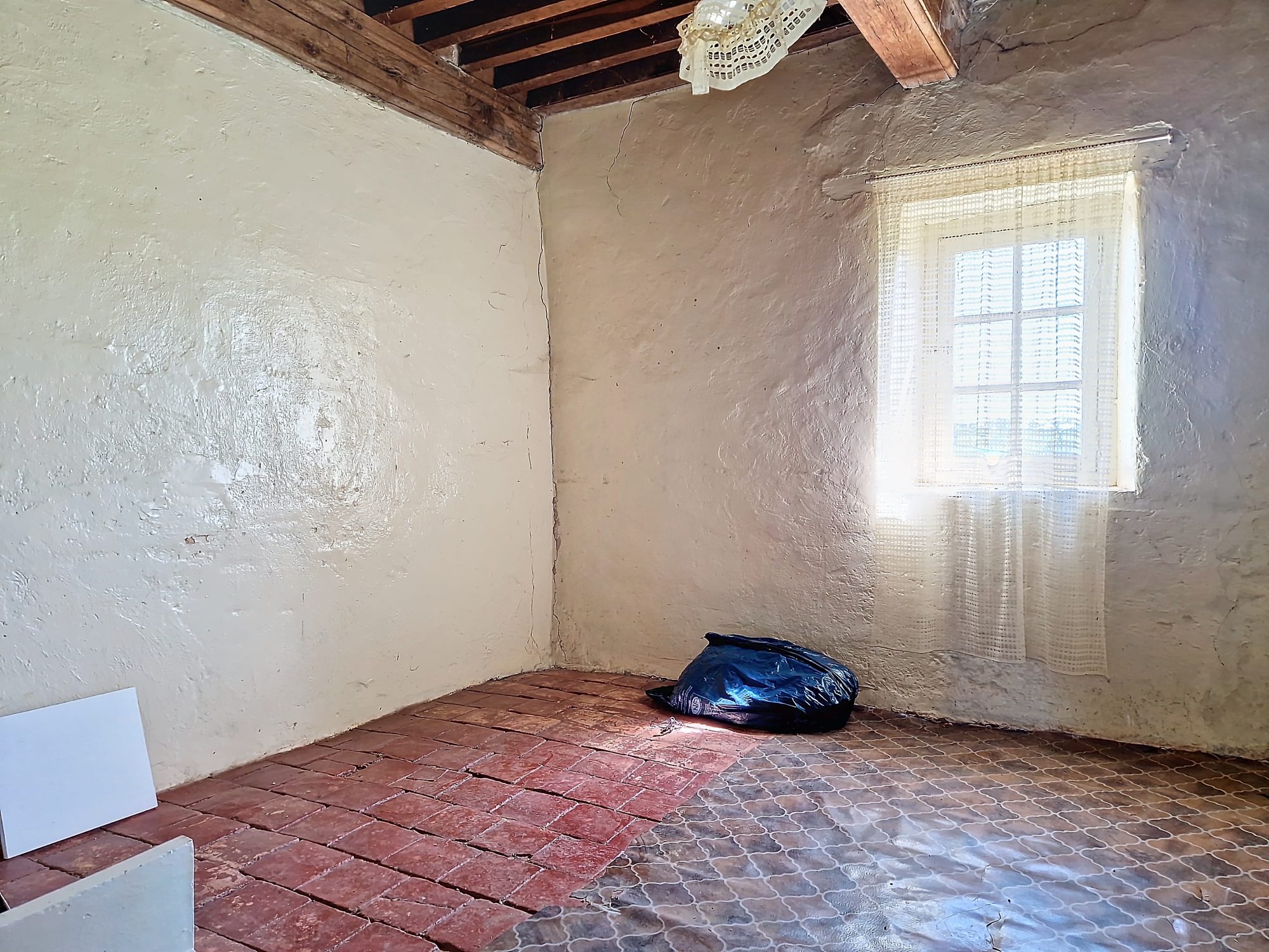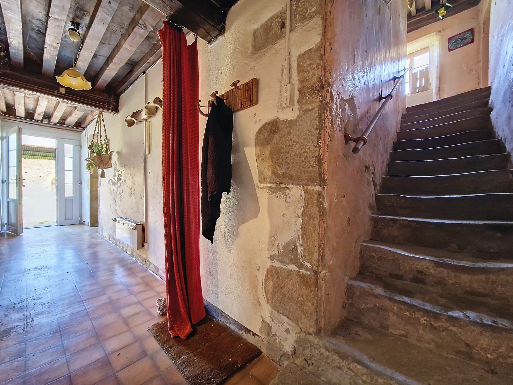 Sa magnifique charpente de toit à croupes (4 pans), son escalier intérieur en pierres, ses plafonds à la française, ses sols soit en dalles, soit en tomettes et ses anciennes cheminées.