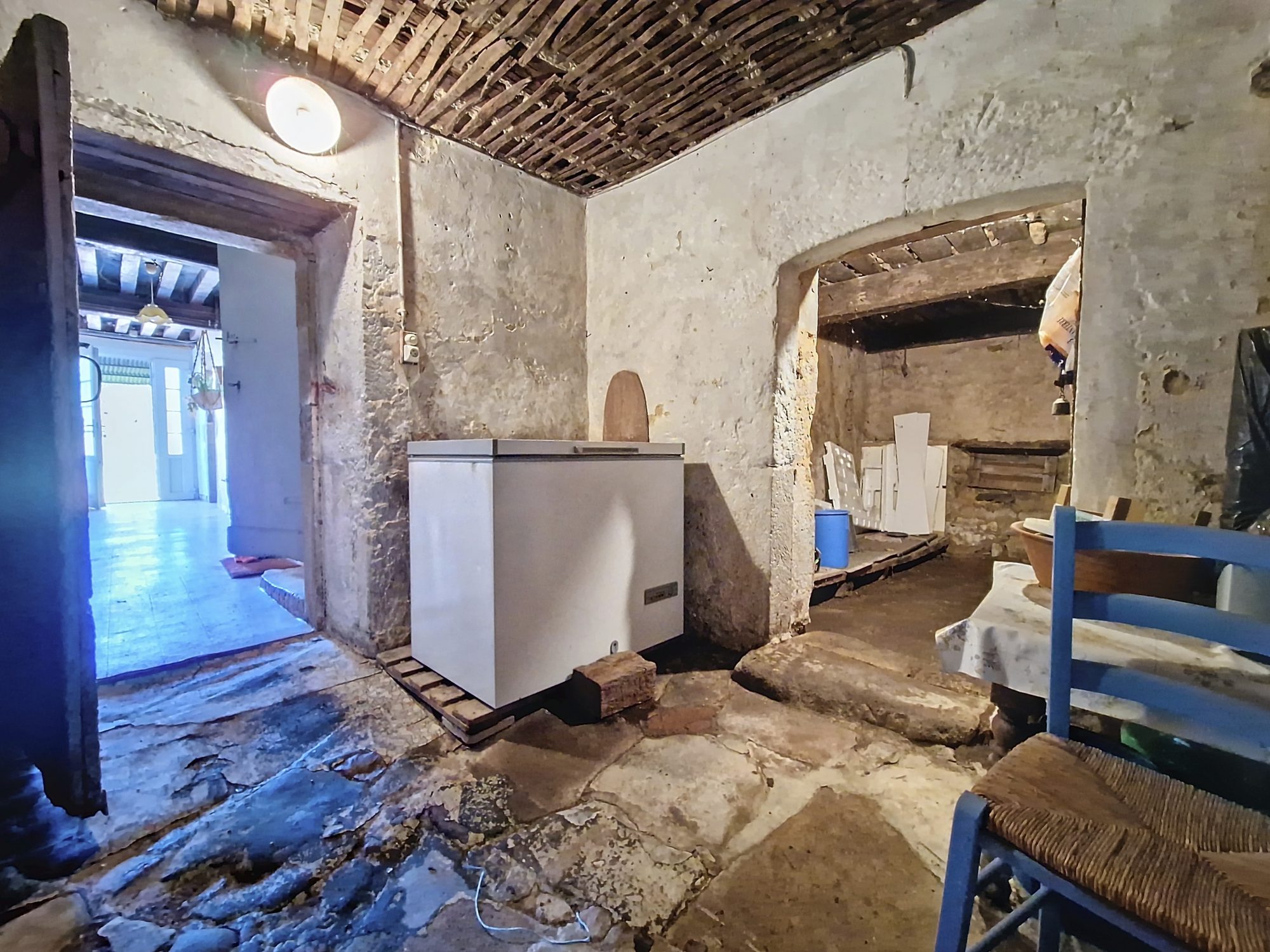 Au RDC : une cuisine, une salle à manger, une salle d'eau et wc, 3 autres pièces à aménager et une cave.