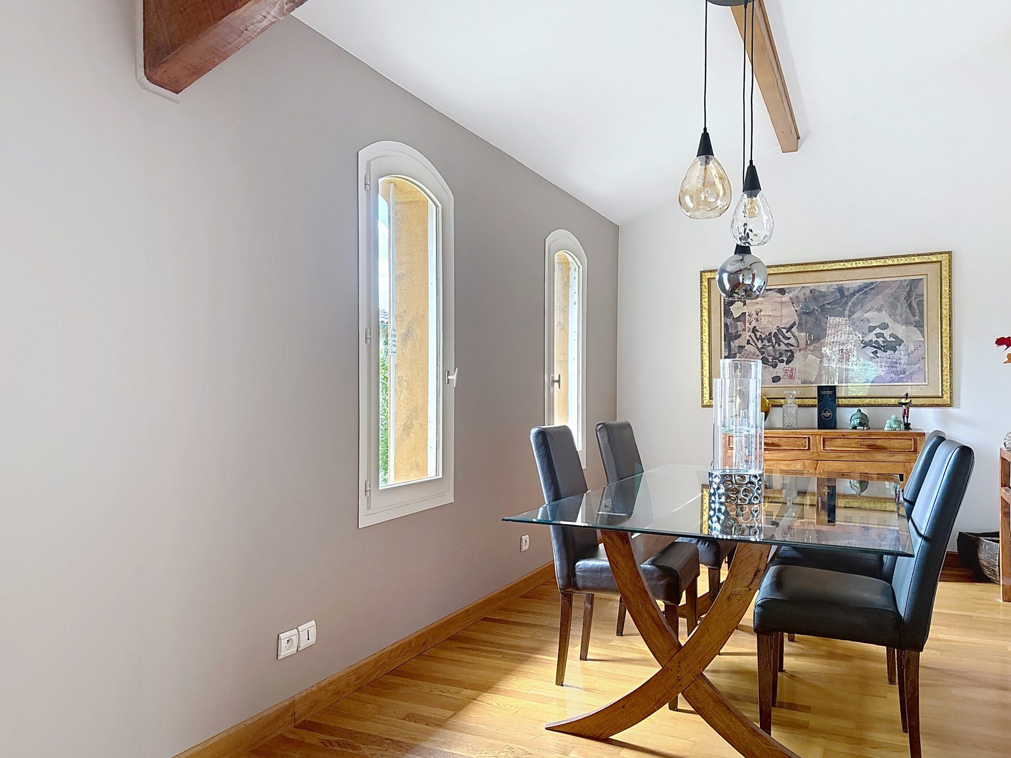 Nous aimons les volumes, la luminosité, l’élégance des 60 m² de pièces de vie, le vaste salon et son coin cheminée, la salle à manger, intimiste et chaleureuse.
