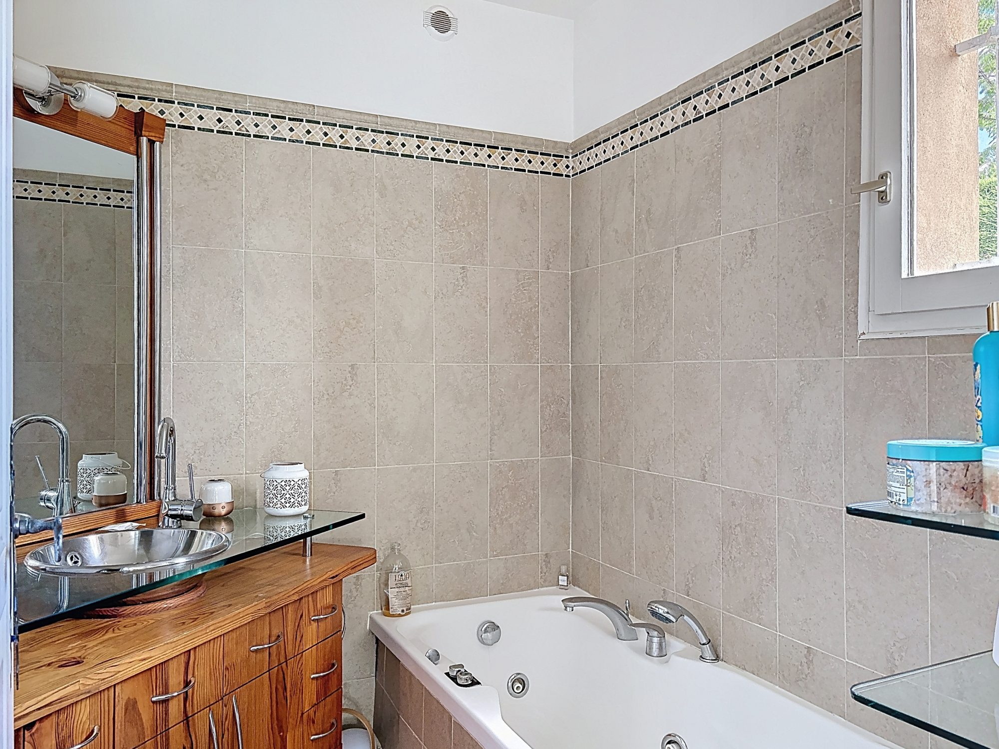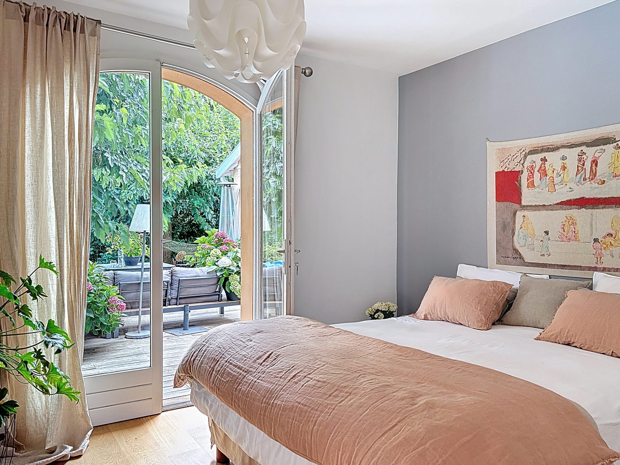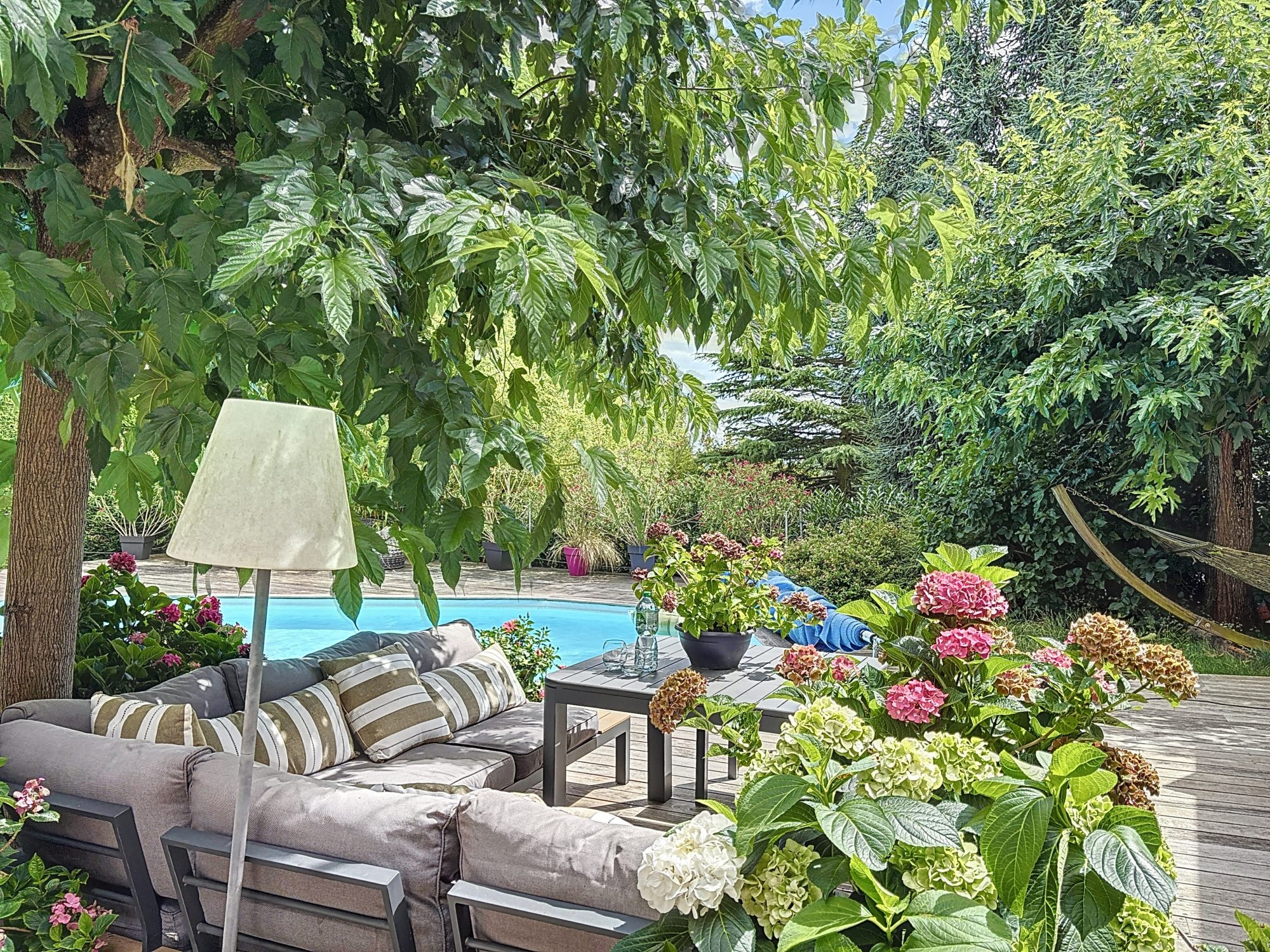 La maison est fonctionnelle et parfaitement adaptée à une vie familiale. La vie est orientée sur l'espace extérieur qui rassemble la piscine, le coin repas et le salon d'été, un terrain de boules, écrin de verdure sans vis à vis.