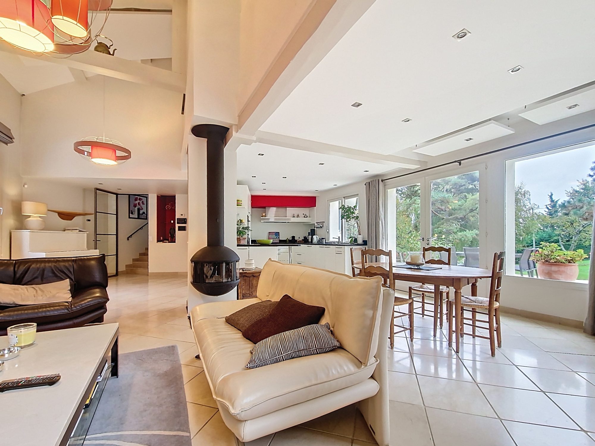 Le vaste séjour de 60 m², baigné de lumière, s’ouvre sur la terrasse plein sud et la piscine chauffée avec son pool house équipé. Cinq chambres, dont une suite parentale, trois salles de bains, trois WC et un sauna complètent les espaces de vie, dans une atmosphère à la fois contemporaine et conviviale. Bien que déjà très bien pensée, la maison offre de multiples potentiels (agrandissement, carport, ...)